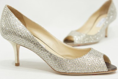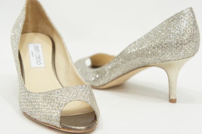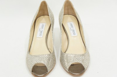 JIMMY CHOO ISABEL CHAMPAGNE GLITTER PUMPS HEEL SHOES 34/4 $595