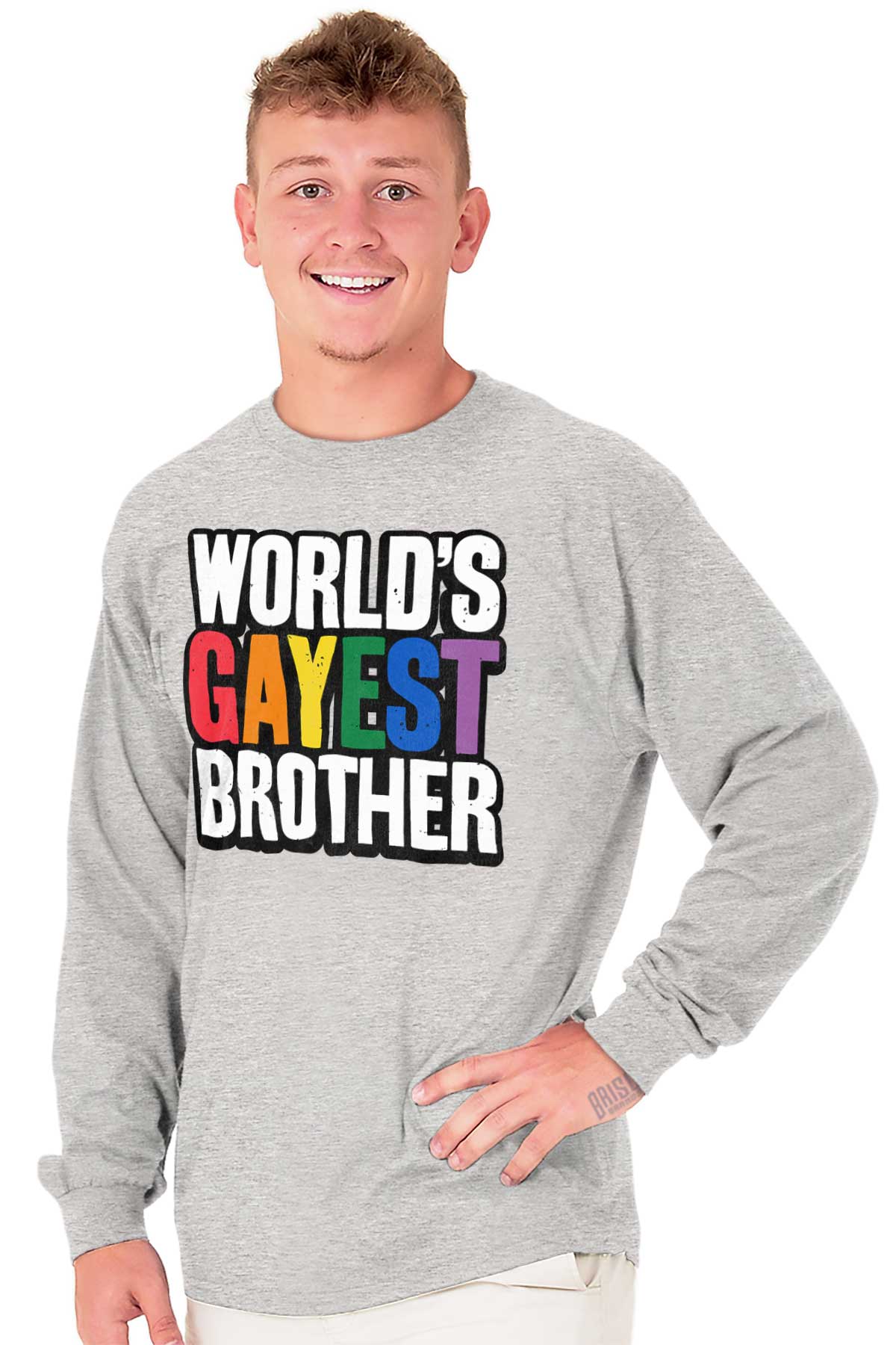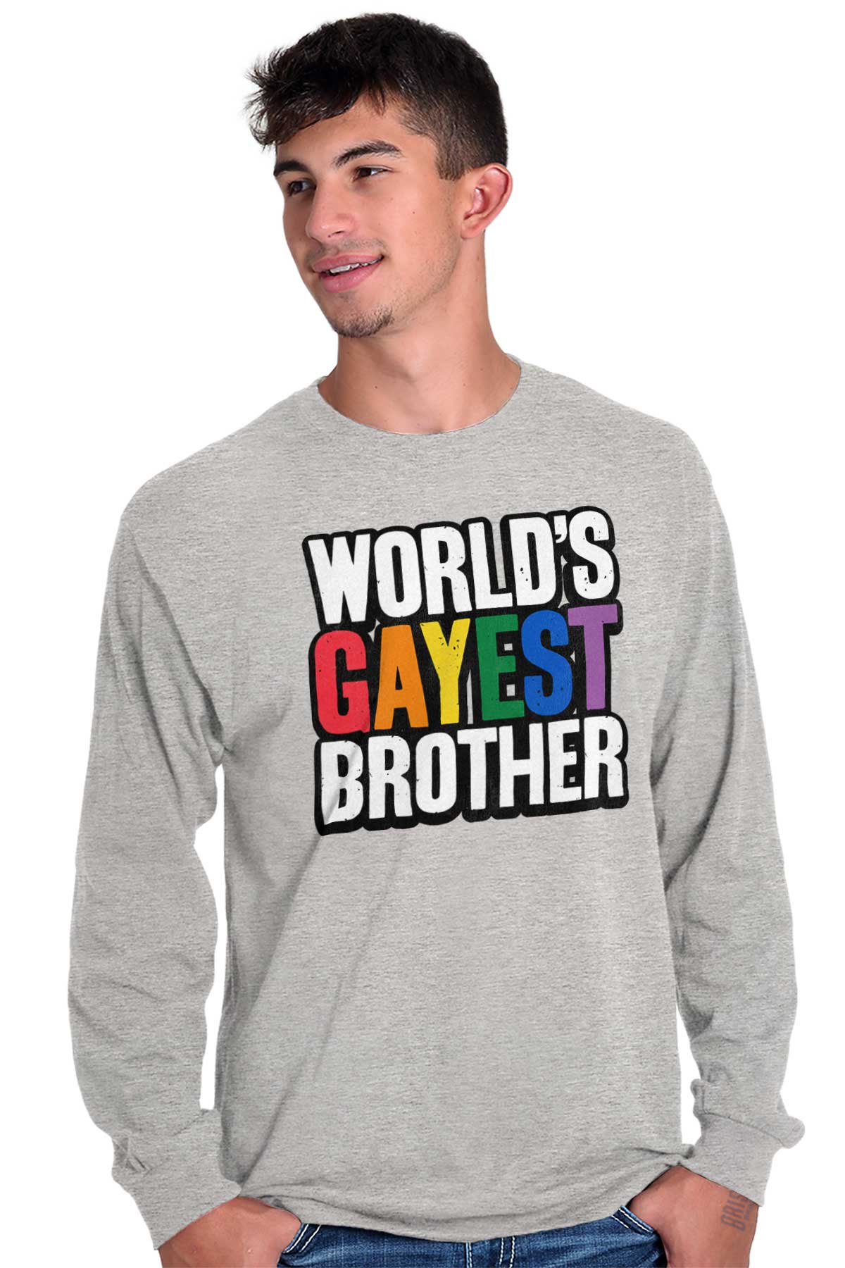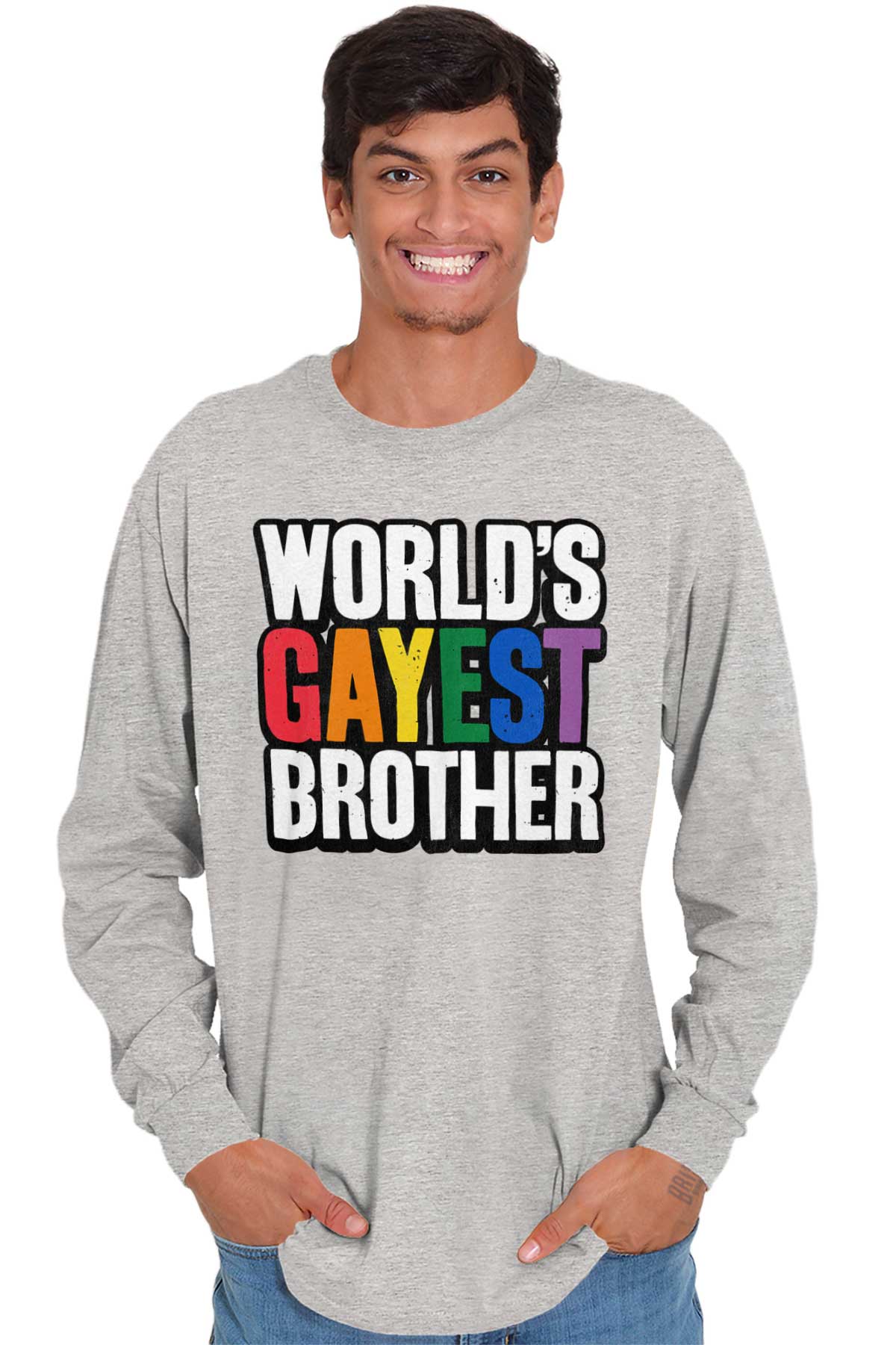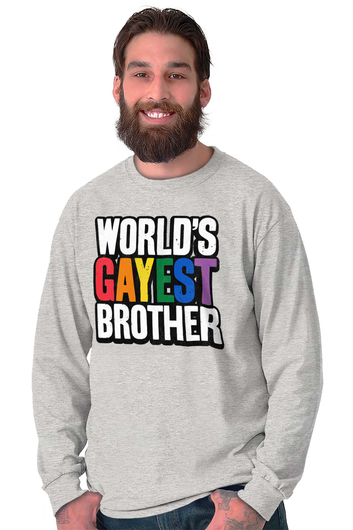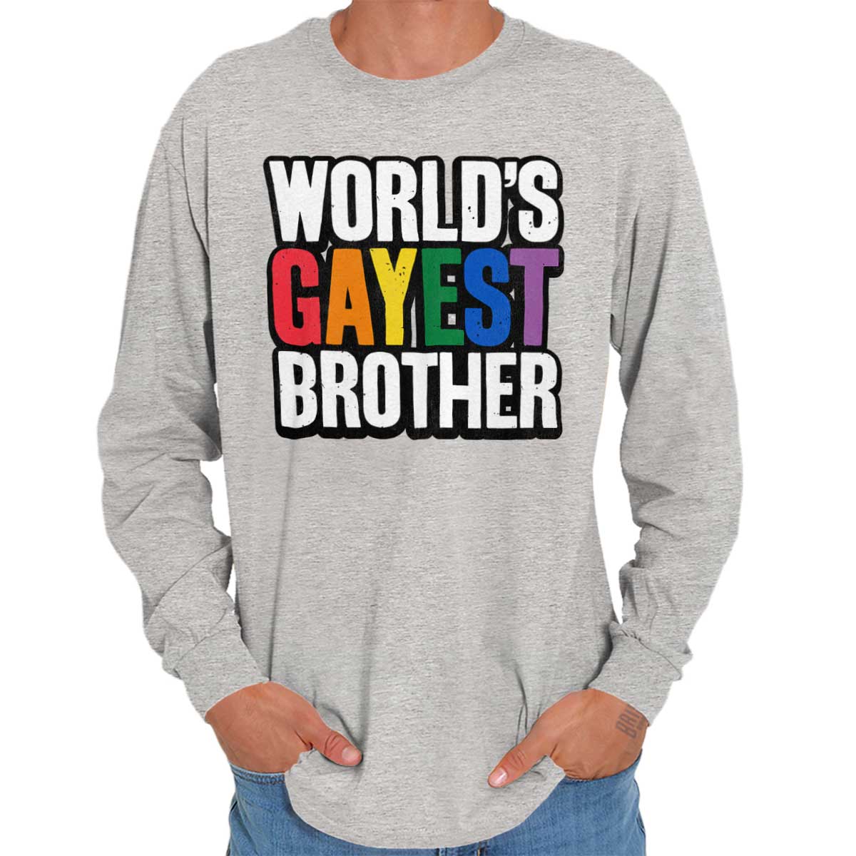 He's been in your life forever and he's one of the best people you know. He's lifted you up literally and figuratively. And he's always taught you to be proud of who you are. He might just be the World's Gayest Brother if you have anything to say about it. You love him and he knows it, all you have to do is show it. This Heavy Cotton Adult Long Sleeve T-Shirt shows how much you care about him. Next time you go to a pride festival or parade, show your support for your favorite brother with this fun pride gift.