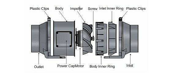 Mischstromventilatoren bestehen aus einer Kombination von Arbeitsprinzipien von Axial- und Gehäuse-Radialventilatoren.