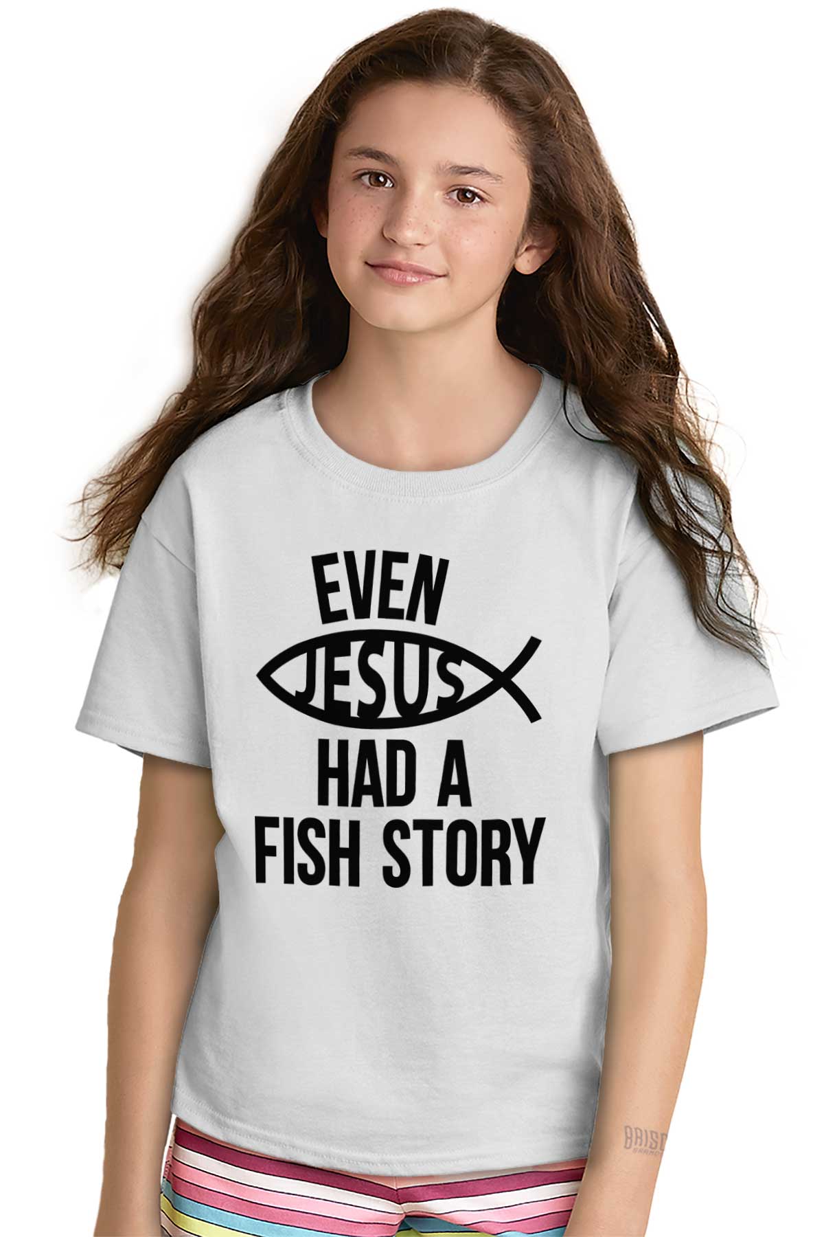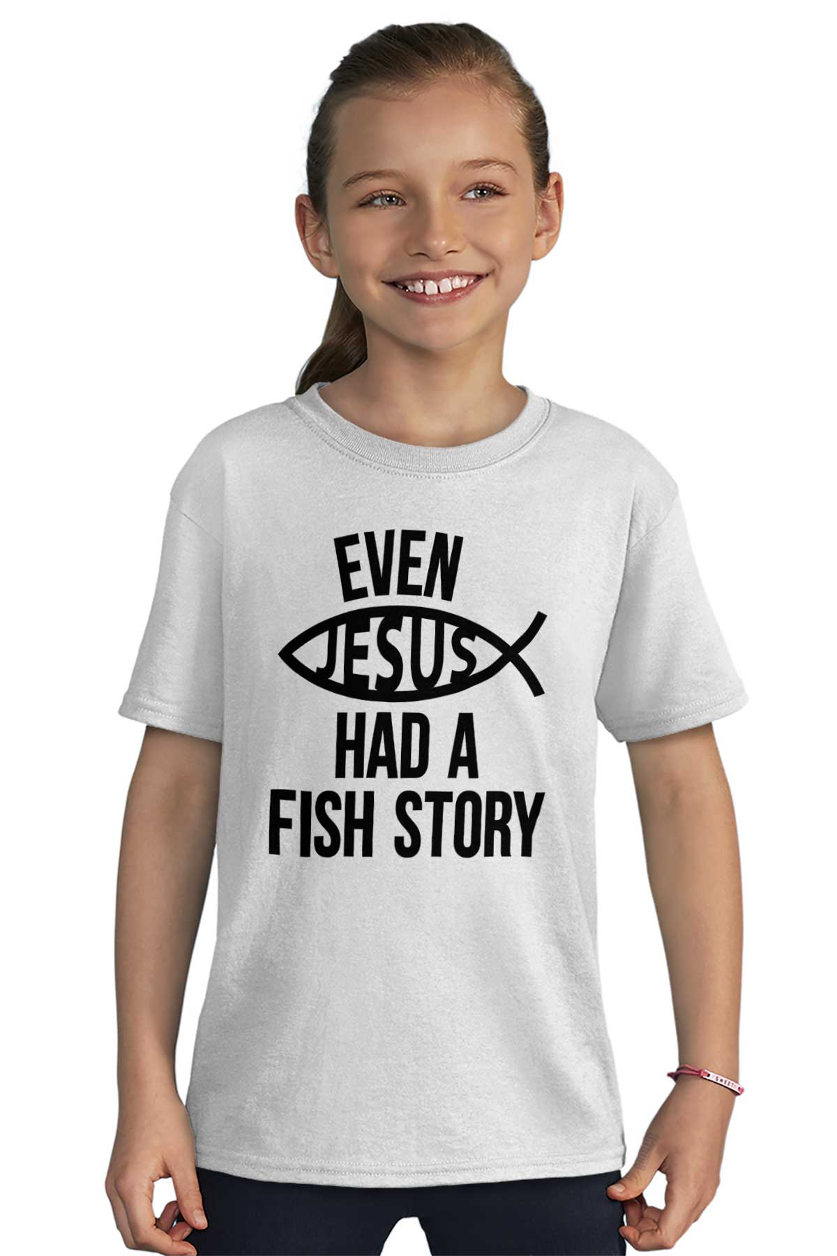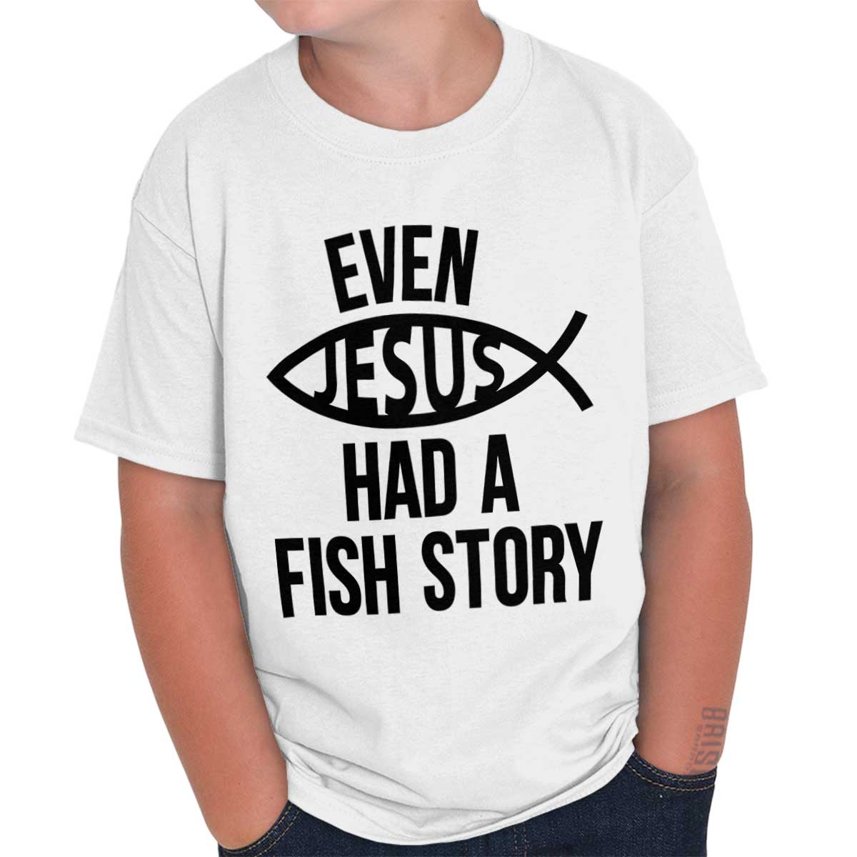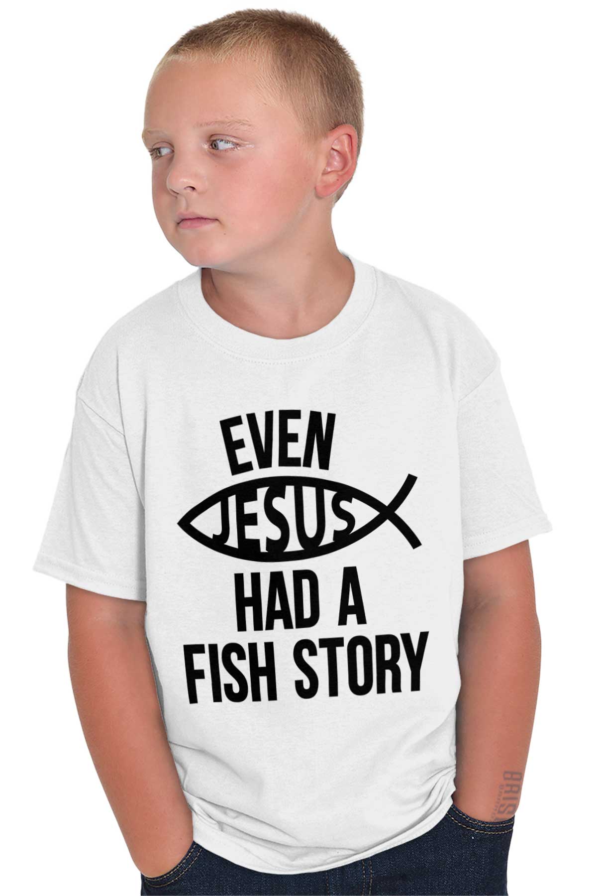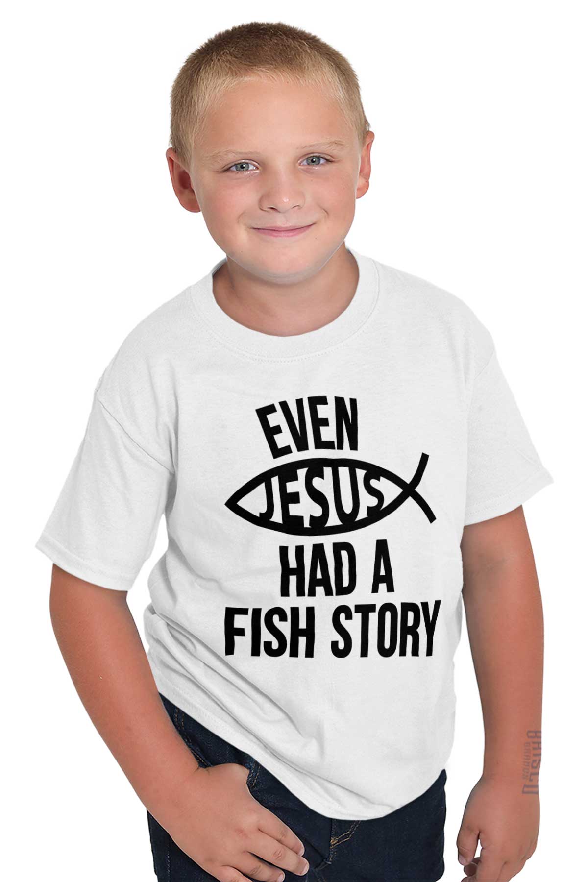 You're hanging out with your buddies on a boat. Living life over a bucket of chum. Crack a few beers and fishing. Did you know Jesus had the same story? Well... not exactly! In the Gospels, helped the fishers of men James and John with a huge haul of fish. And of course, we all know about the feeding of the multitudes. So hey, while you're out on that boat - you can say you're living a little like Jesus did. Wear this Heavy Cotton Youth T-Shirt to show people that sometimes fishing is more spiritual than you think. Sure, Jesus had miracles but you got a fishing rod.