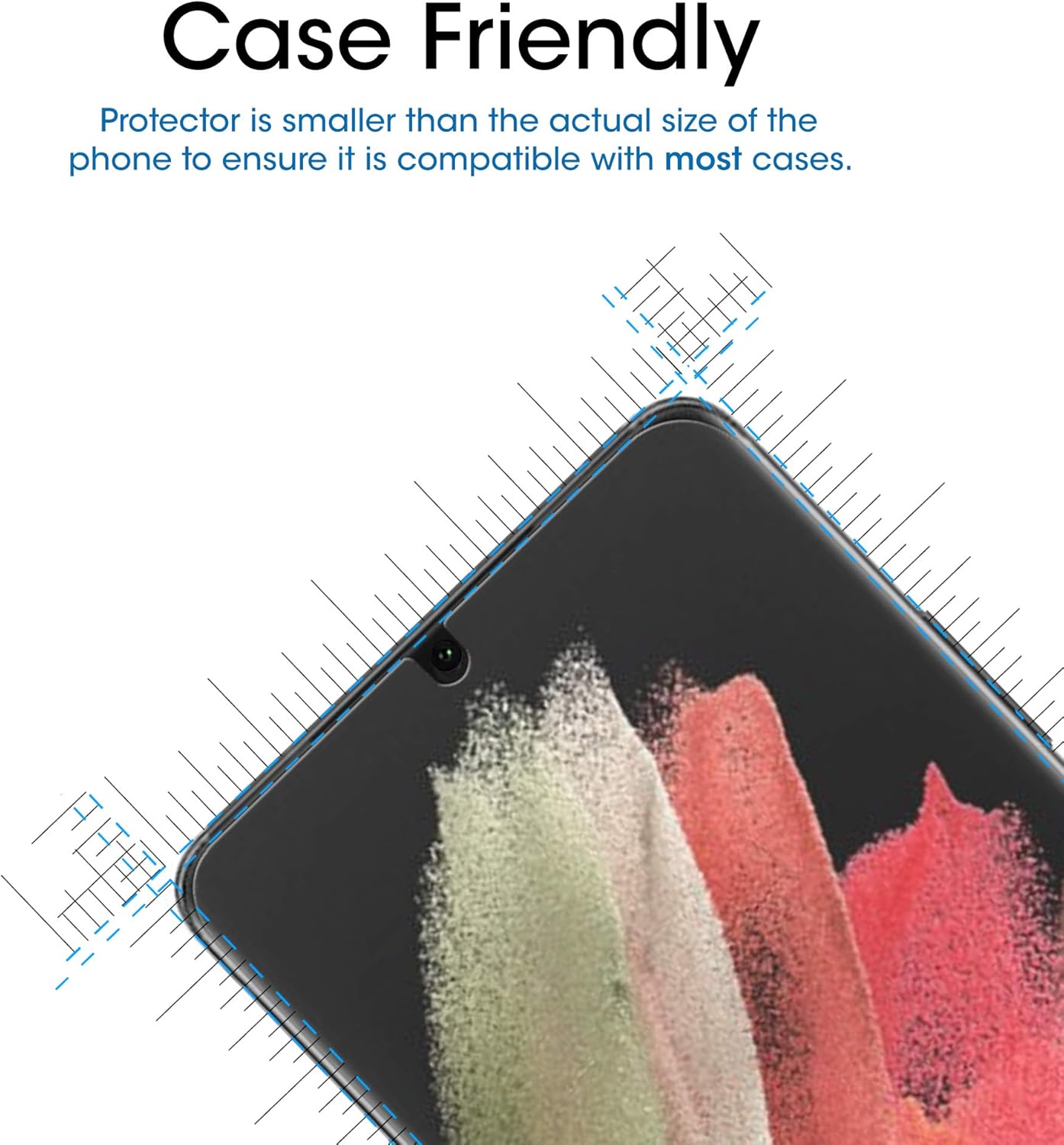 amFilm Ultra Glass screen protectors are made from superior quality tempered glass, and specifically designed to fit your Samsung Galaxy S21 Ultra. These glass protectors provide case friendly coverage as well as an ultra-clear viewing experience with 99.9% screen transparency. They also feature our unique Ultra Glass technology, which offers edge to edge protection while functioning seamlessly with the Ultrasonic Fingerprint Scanner on your device. This is made possible through a UV Gel Installation process in which a UV Light is used to adhere the screen protector to your device (just re-scan your fingerprint after application to ensure a perfect connection). Plus, they are extremely durable with a surface hardness of 9H, which shelters against scratches, chips, drops, and other normal signs of wear. To top it all off, these very resilient screen protectors will not interfere with the screen sensitivity of your Galaxy S21 Ultra, resulting in an optimal user experience.