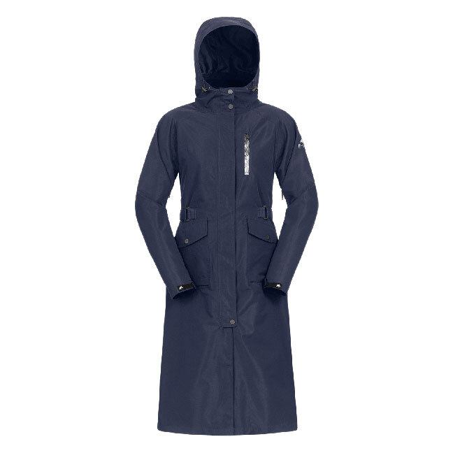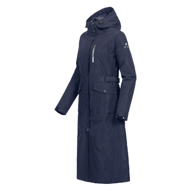 Long, fitted raincoat Width - Adjustable at waist Wind Waterproof Water column 5,000mm Lightweight, breathable material (5.000 g/m²/24hr) Fully sealed seams Microfleece on inside of collar Hood suitable for use with helmet, fixable at back Two side insert pockets, reflective breast pocket Two-way zip with chin and saddle protection Two long riding vents, reflectors on the inner rain shield Internal leg straps Reflective logo print on the arm and back yoke Width-adjustable sleeve cuff with reflective touch tape fastener Ventilation zips for adequate air circulation MATERIAL: Outer material: 100% polyester, Lining: 100% polyester Size: Ladies XS (6-8), S (8-10), M (10-12), L (12-14), XL (14-16)| SKU | K69987 |