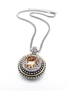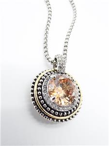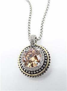 EXQUISITE Designer 18kt Gold Plated Brown Topaz 5.00ct Round Cut CZ Crystal Pendant Box Chain Necklace