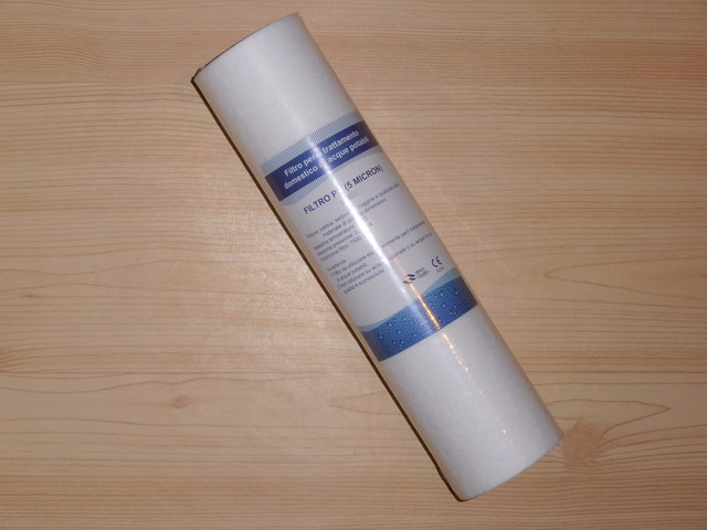 1° filtro: PPF cartuccia a panno, in fiocco di polipropilene, per sedimenti 5 Micron, rimuove sabbia, ruggine, particelle in sospensione.