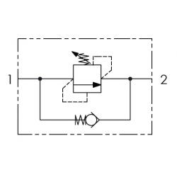 Valve de séquence en ligneOrifices : G1/2"Débit max : 40 L/minPression max : 350 barsPlage de réglage du ressort : 70 à 350 bars