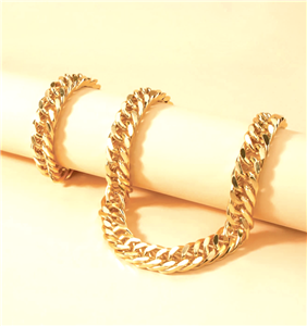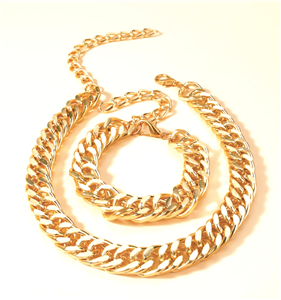 Stylish Glamour! This gorgeous links chain choker necklace & bracelet set has a lightweight gold hollow links chain 15.5" long choker necklace and matching 7.5" long gold links chain bracelet.