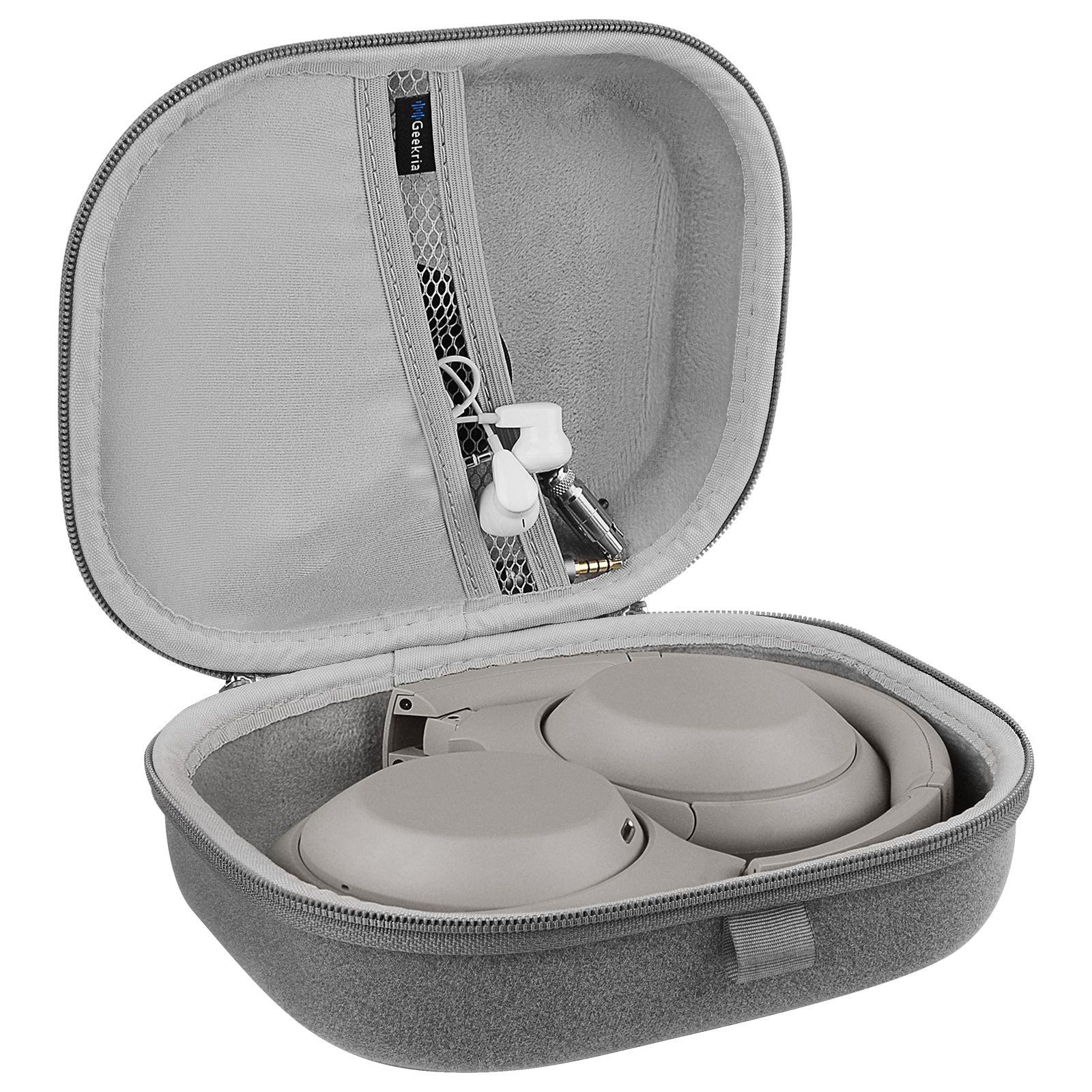 Geekria Shield Headphones Case Compatible with Sony WH1000XM4, WH1000XM3, WH1000XM2, WH-XB910N, Replacement Hard Shell Travel Carrying Bag with Accessories Storage (Microfiber Grey)