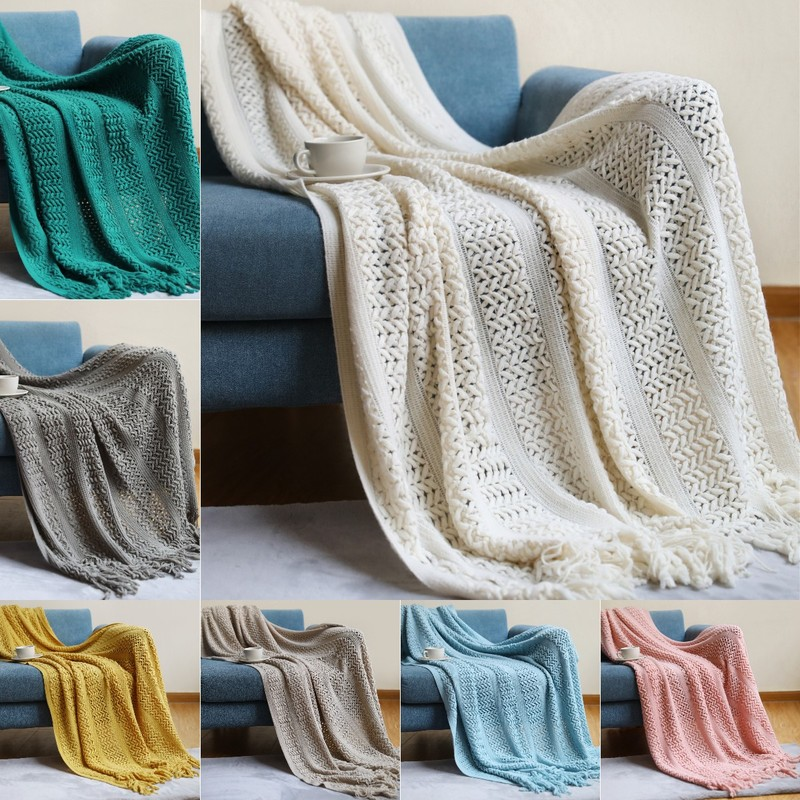 Cotton Thread Knitted Blanket with Tassel Sofa Cover Bedspread Tablecloth