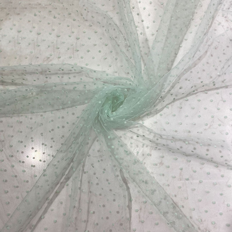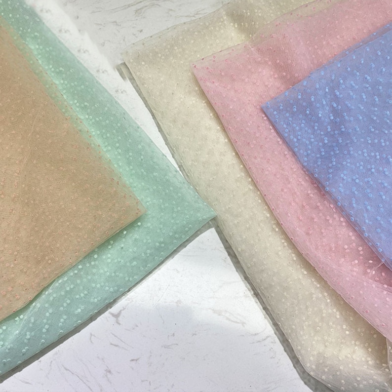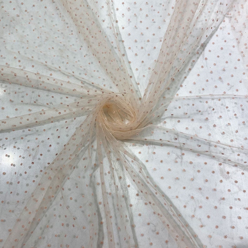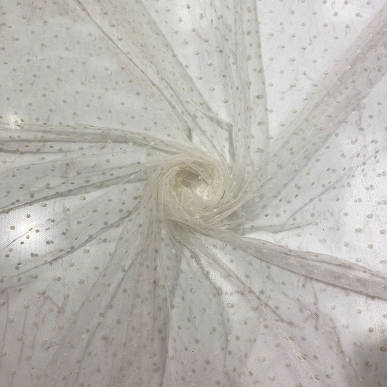 Soft tulle lace fabric with small flocking polka dots, perfect for wedding gown, party decoration, girl dress, bridal veils, tutu skirt..
