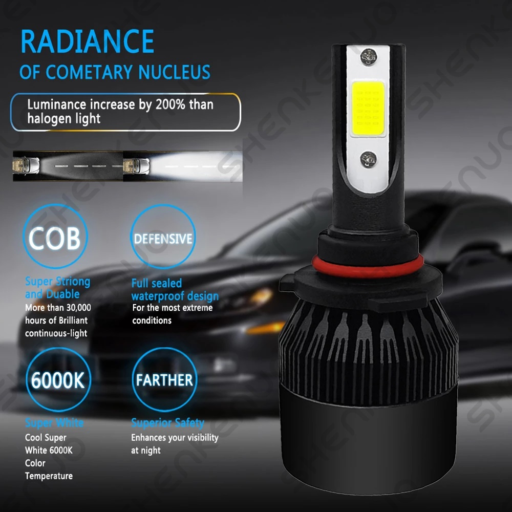 Specifications: Plug Type: 9005 (High Beam) + H11 (Low Beam) + H11 (fog light) 1.Wattage:50W/Bulb 100W/Set 2.Lumens: 6000LM/Bulb 3.Shakeproof and Long lasting up to 60,000 Hours. 4.Color Temperature: 6000K White 5.Voltage: DC 9-32V ( Fit 12V,24V Vehicle ) 6. LED type: SHENKENUO COB Chips. 7.Built-in Fans & Ballasts , No Other Fans & Ballasts Required,Smart Efficient Cooling System Fast Heat Dissipation. 8.Low Voltage Protection, High Precision Constant Current driver Chip 9.Easy installation,Just Plug and Play. Automotive LED Bulbs advantages: 1. LED lights than traditional halogen energy, more bright . High focus and max light output with a wider and farther lighting area, Safer Night Driving. 2. Xenon lamp brightness and proximity , but the LED lights light up without delay, to enhance road safety. Instant start no strong currents impact , effectively protecting the car comes with a battery , improving battery life of more than 30%. 3. Fast cooling , the appearance of the most advanced design , thermal structure ingenious and reasonable.Power driver with wide voltage constant current mode , the car can respond to a variety of voltage instability , the effective protection of normal use Led efficient and simple structure. 4. Heating temperature is low , protect the car . Xenon working temperature up to 800 ° -1000 ° , the main reason for the car ignition 5. LED car headlights simple structure, fewer parts than xenon lamps, significantly lower than the xenon lamp failure rates ! Package Content: 6X LED Bulb 1.Compatible List can not show up all Car model. Please check the Correct bulb size of your vechicle. 2.If you are unsure your bulb type, please do remember send message to tell us your car make, model, year and other information which is helpful to check bulb type. |