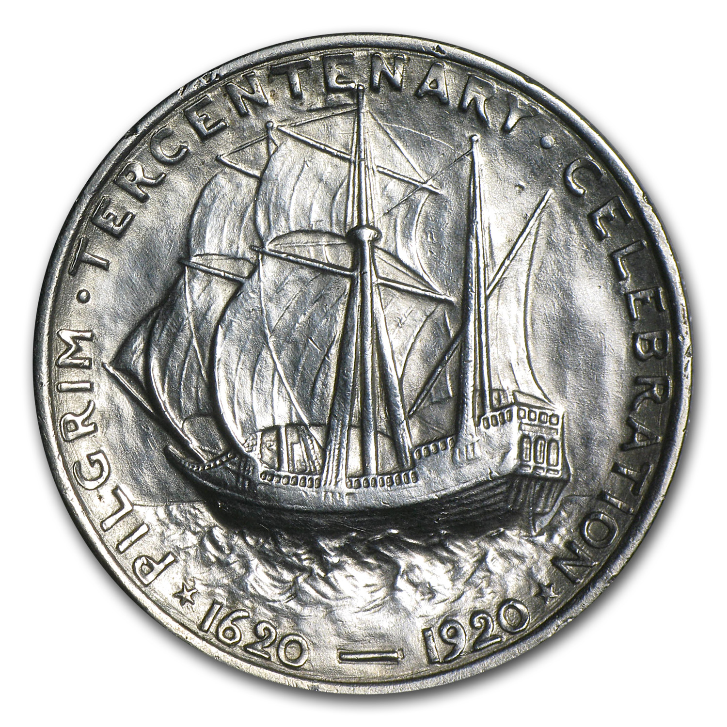 The coins struck in 1921 show the date in addition to 1620-1920. The 1920 issue had no date on the obverse.