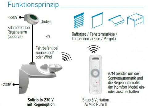 - Regenautomatik: Schützt optional vor Regen und verlängert damit die Lebensdauer von Markise & Co.