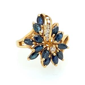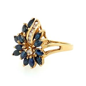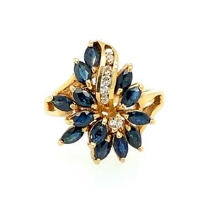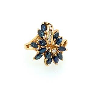 Vintage Stunning Sapphire and Diamond 14kt Cluster Ring