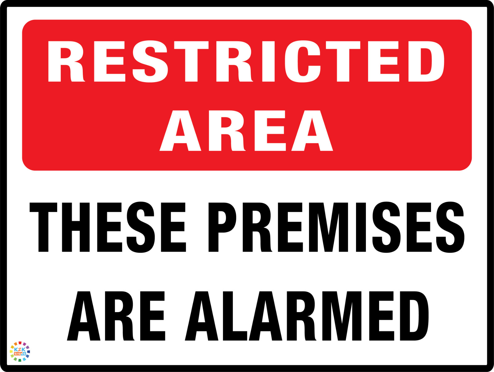 Enhance site security and alert personnel with our Restricted Area These Premises Are Alarmed Sign/Sticker (RA05), designed to clearly communicate that the area is protected by an active alarm system. This highly visible sign/sticker provides clear guidance for staff, contractors, visitors, and the public, helping prevent unauthorised access and supporting the protection of sensitive, high-risk, or restricted areas. Its clean layout and bold wording ensure strong readability, making it suitable for warehouses, industrial facilities, commercial buildings, laboratories, construction sites, and other operational environments where security measures are in place. Manufactured from durable materials resistant to fading, moisture, and environmental wear, it maintains long-lasting clarity in both indoor and outdoor conditions. Available in multiple sizes and material options, it can be applied to doors, gates, fences, walls, barriers, and other points requiring clear security communication. Fully compliant with Australian Standard AS 1319, this sign/sticker reinforces communication, supports safety and security protocols, and contributes to a well-managed and secure workplace.TOUGH MATERIAL OPTIONS: Supplied in multiple durable formats, including self-adhesive vinyl ideal for smooth indoor surfaces, sturdy plastic designed for secure wall or door mounting, heavy-duty metal built to withstand outdoor exposure and frequent handling, and magnetic panels that attach firmly to steel surfaces while allowing easy removal and repositioning without leaving residue or causing surface damageVERSATILE SIZE RANGE: Available in 130mm x 95mm, 250mm x 180mm, 300mm x 225mm, 450mm x 300mm, 600mm x 450mm, 900mm x 600mm, and 1200mm x 900mm, offering options from compact markers suitable for small spaces to larger panels that provide clear visibility in offices, warehouses, workshops, industrial zones, and public areas where identification is essentialHIGH QUALITY PRINTING: Produced using eco solvent or latex inks that maintain vibrant colour, sharp graphics, and long-lasting clarity, ensuring text and images remain readable under sunlight, repeated handling, or cleaning, supporting reliable indoor and outdoor performanceSIMPLE INSTALLATION METHODS: Vinyl variants feature peel-and-stick backing for fast placement, plastic and metal options are pre-drilled for secure mounting on walls, doors, or posts, and magnetic panels allow effortless attachment and repositioning on steel surfaces without tools or residue, making adjustments fast and straightforwardVISIBILITY ENHANCEMENT OPTIONS: Supplied in standard finish for everyday clarity, Class 2 reflective for improved recognition in shaded or low light areas, and Class 1 reflective for superior night time visibility, providing dependable identification that supports safety, compliance, and clear communication across industrial, commercial, and public environments