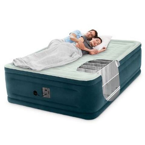 Sleep luxuriously just about anywhere with the Intex 24" Full Durabeam Pillow Top with an Internal Pump. Inflatable air mattresses are convenient, but theyre not always known for their comfort or spacious designs. The Intex Dream Lux Airbed elevates the humble air mattress with a sumptuously cozy build, with a plush pillow-top sleep surface, and flocked sides.