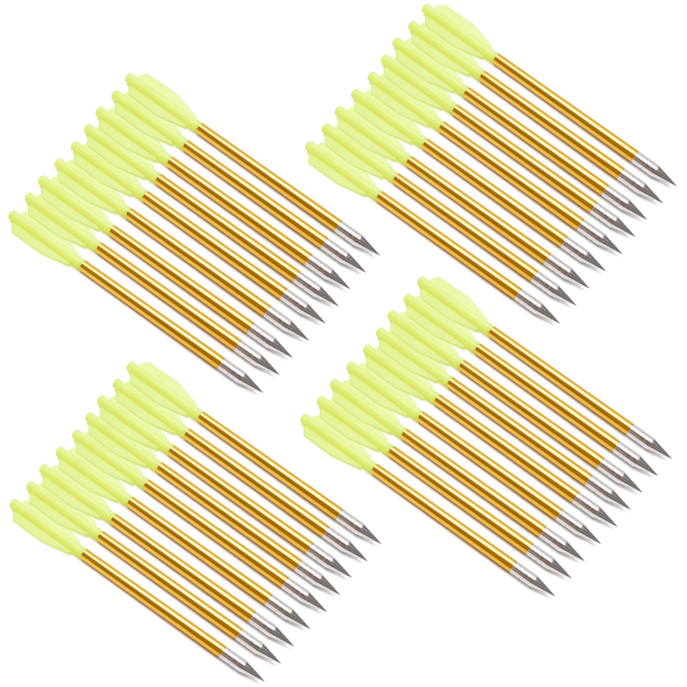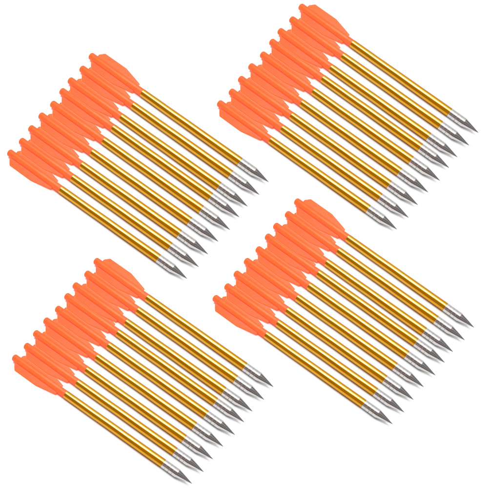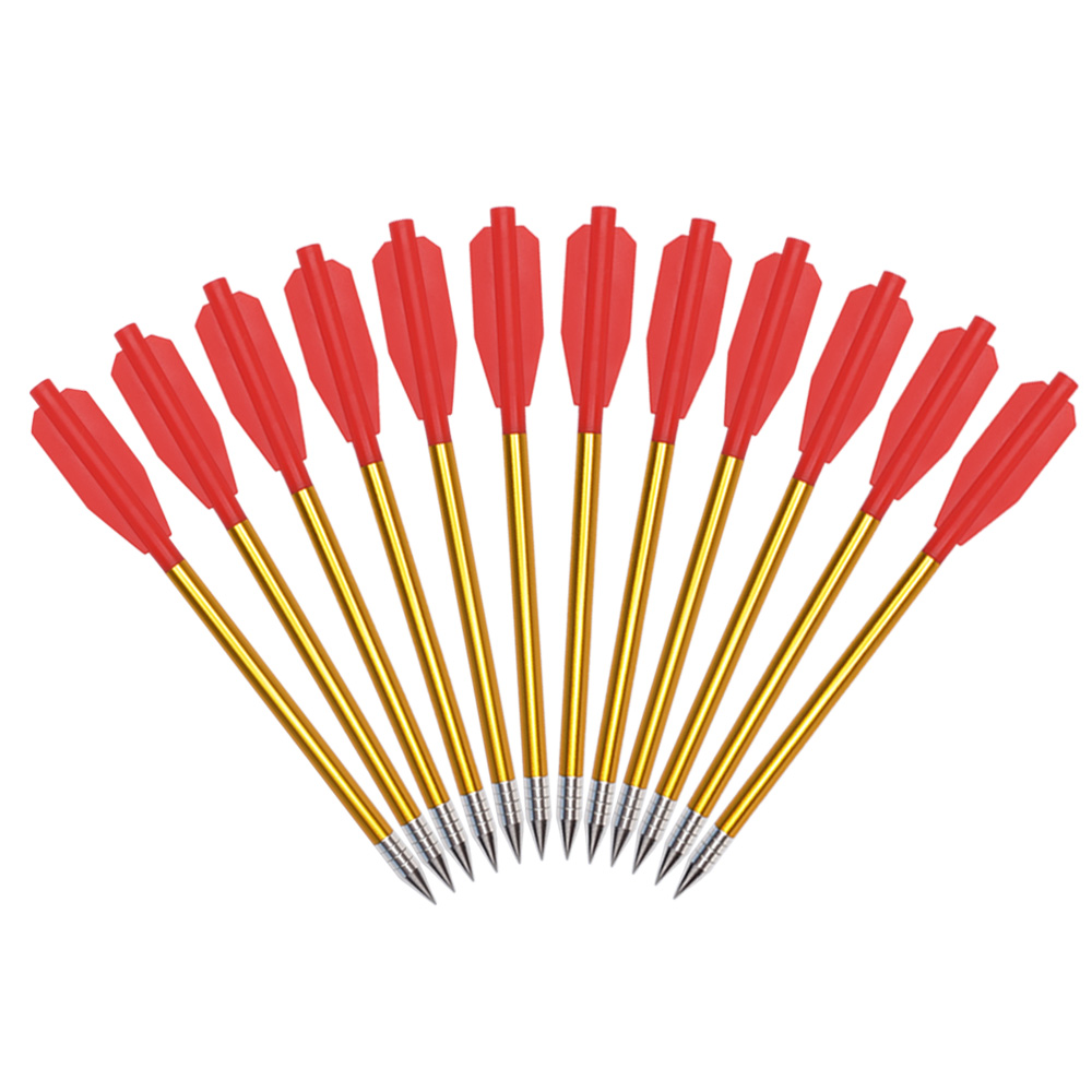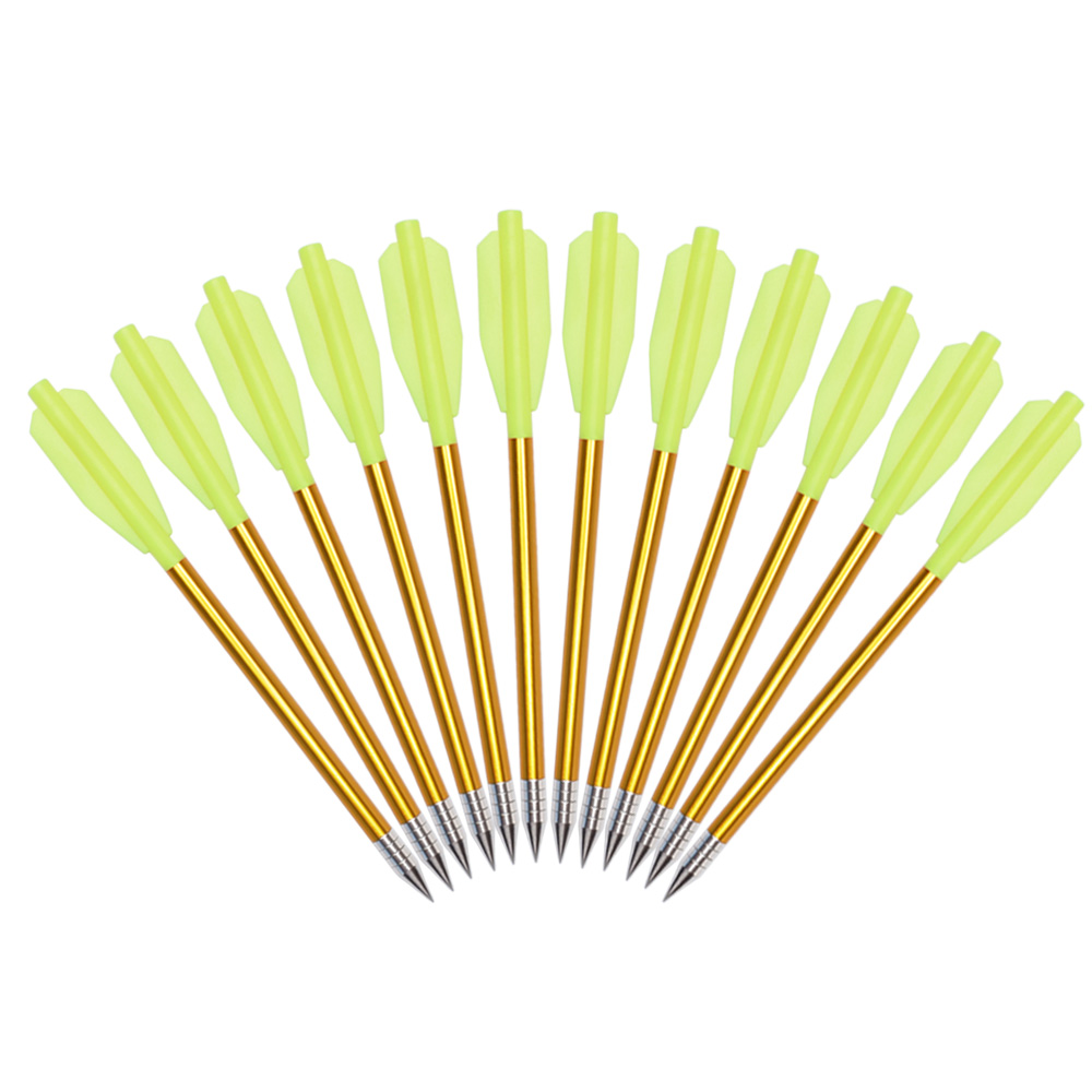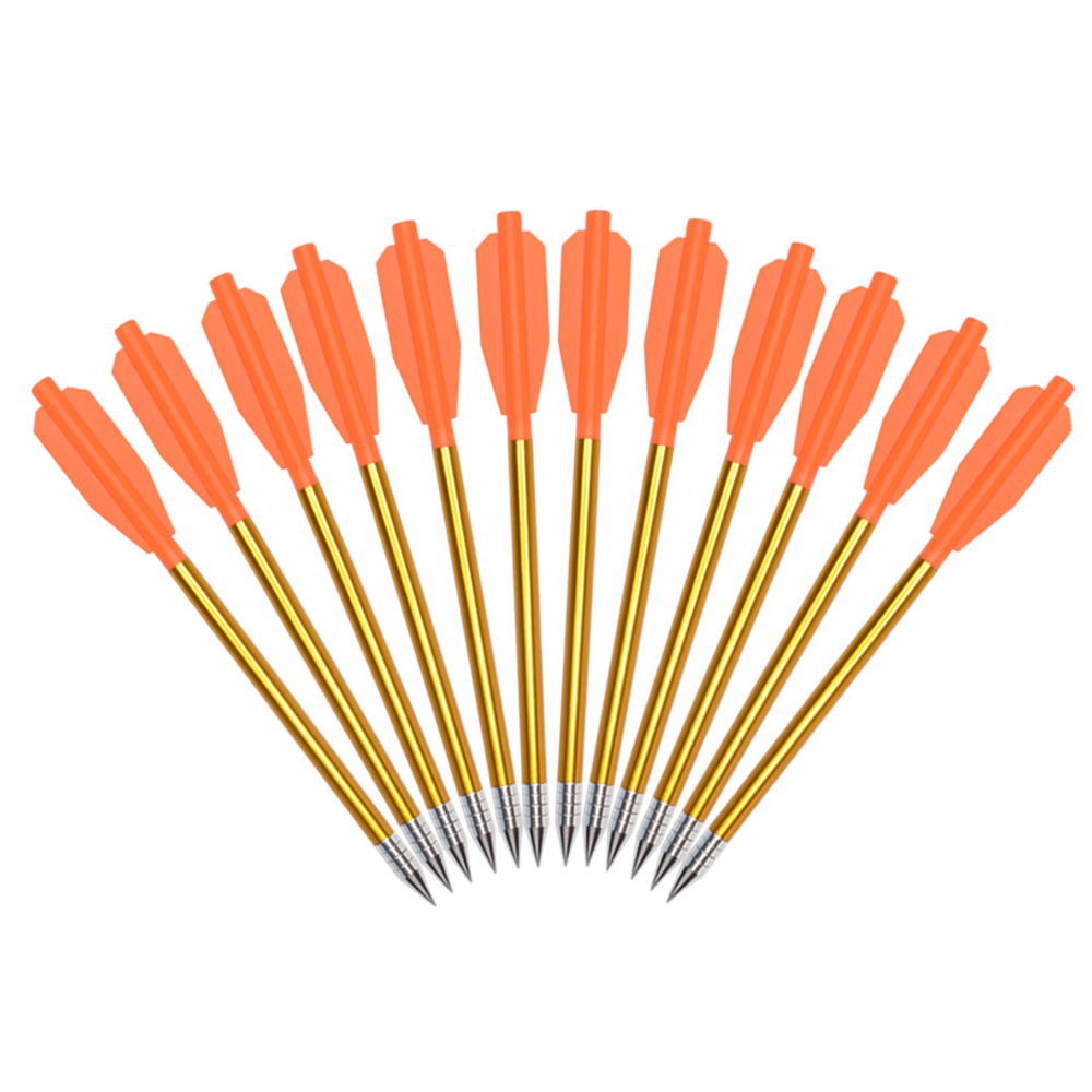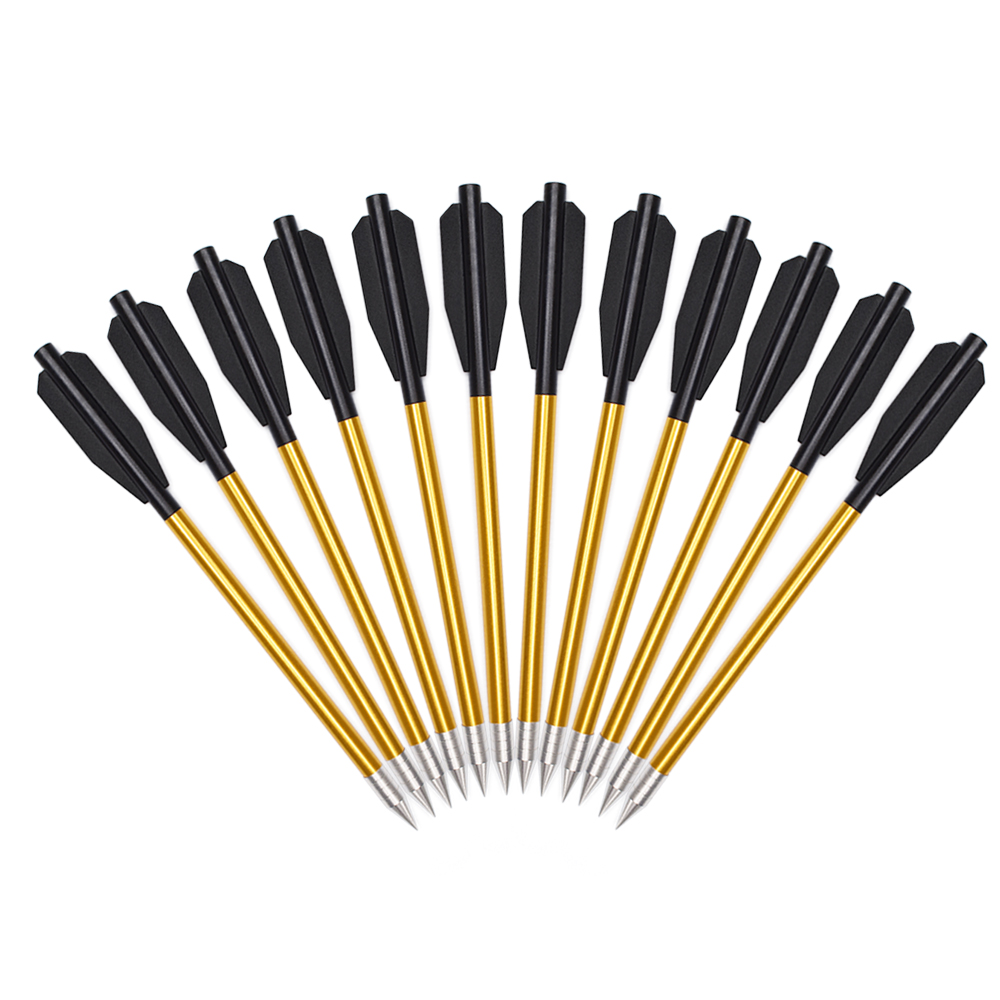 Quantity : 12 or 36 Pcs/Pack Use: Hunting Type: Mini Crossbow Bolts/Arrows Shaft Material: Aluminum Vane Material: Plastic Number of Vane:2 pcs Tips Material : Steel