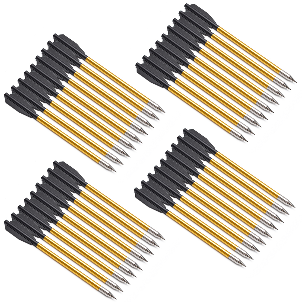 【High Quality Material】Consists of Aluminum shaft and razor sharp steel tips, durable and solid, low hand shock with good speed. 【Fits Crossbow】Crossbow 100grain steel Tips Works on crossbows of 50LB. 【You Can Play】Appropriate for archers 6 years old and up. 【Outdoor Fun】Perfect for small game hunting, target practice & outdoor shooting training. 【Package】The 6.5 inch aluminum arrows comes with pack of 12/36PCS