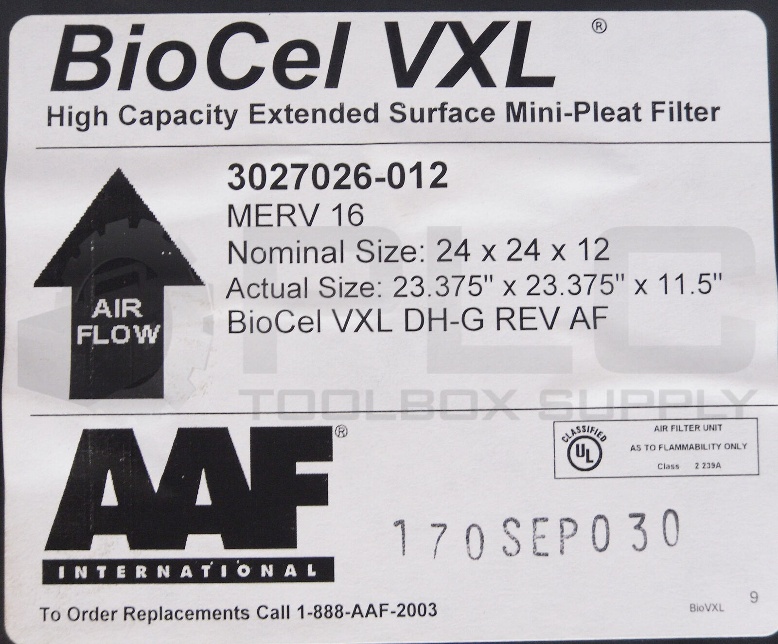 NEW AAF INTERNATIONAL 3027026-012 BIOCEL VXL HIGH CAPACITY MINI-PLEAT FILTER MERV 16 24X24X12
