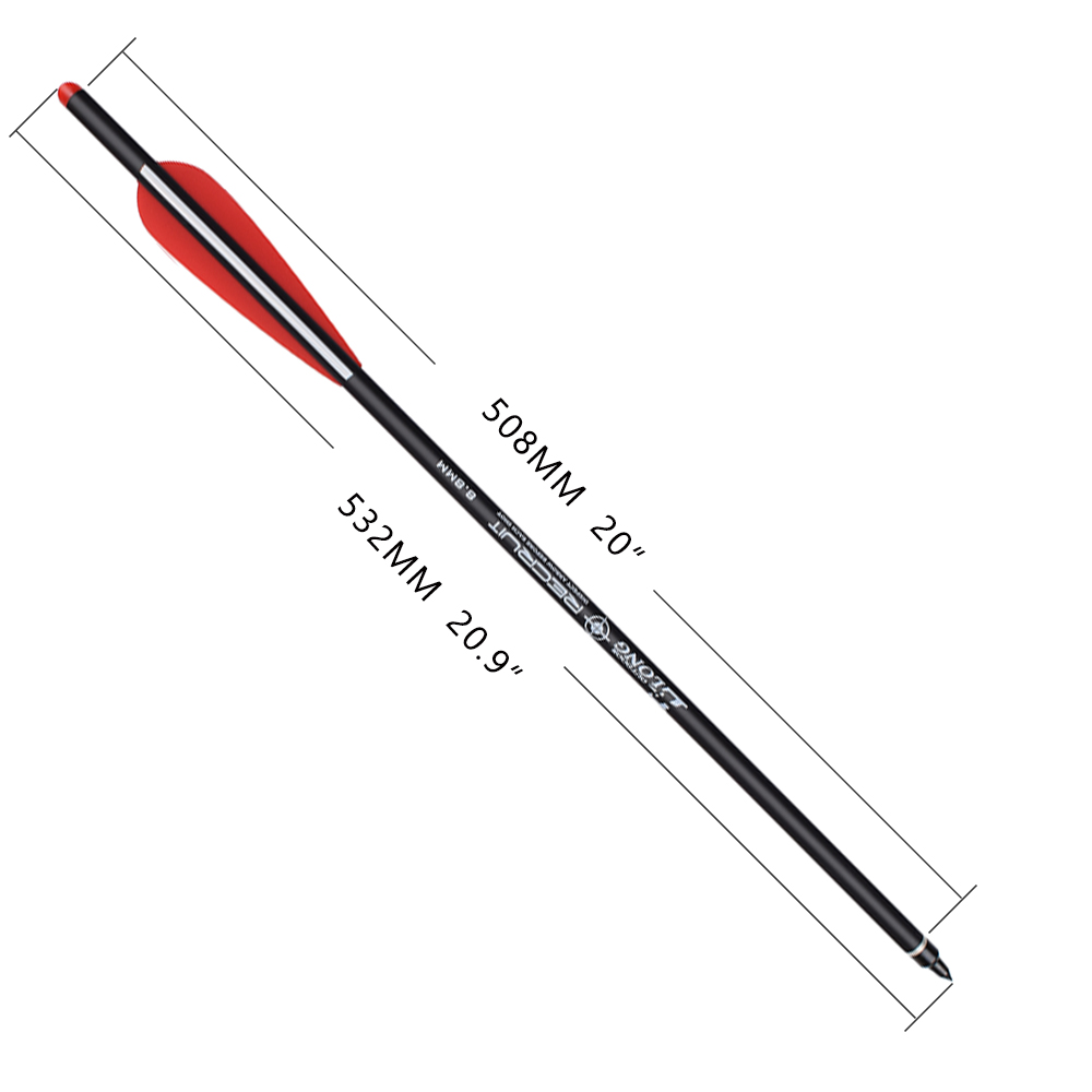 Standard 100 grain steel screw point with insert and moon nock allow you to obtain accessories for repair easily. Bolts with 3.8" plastic vanes 2 red 1 white, red color moon knocks.