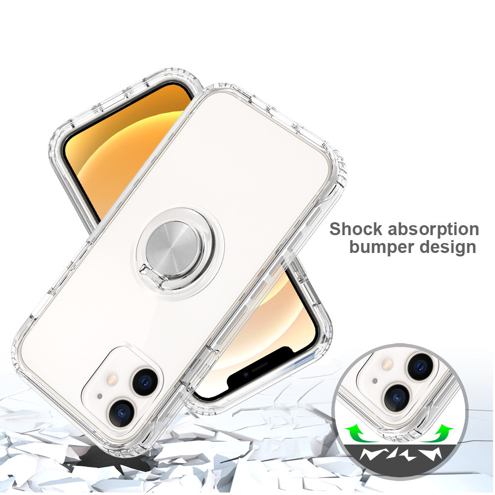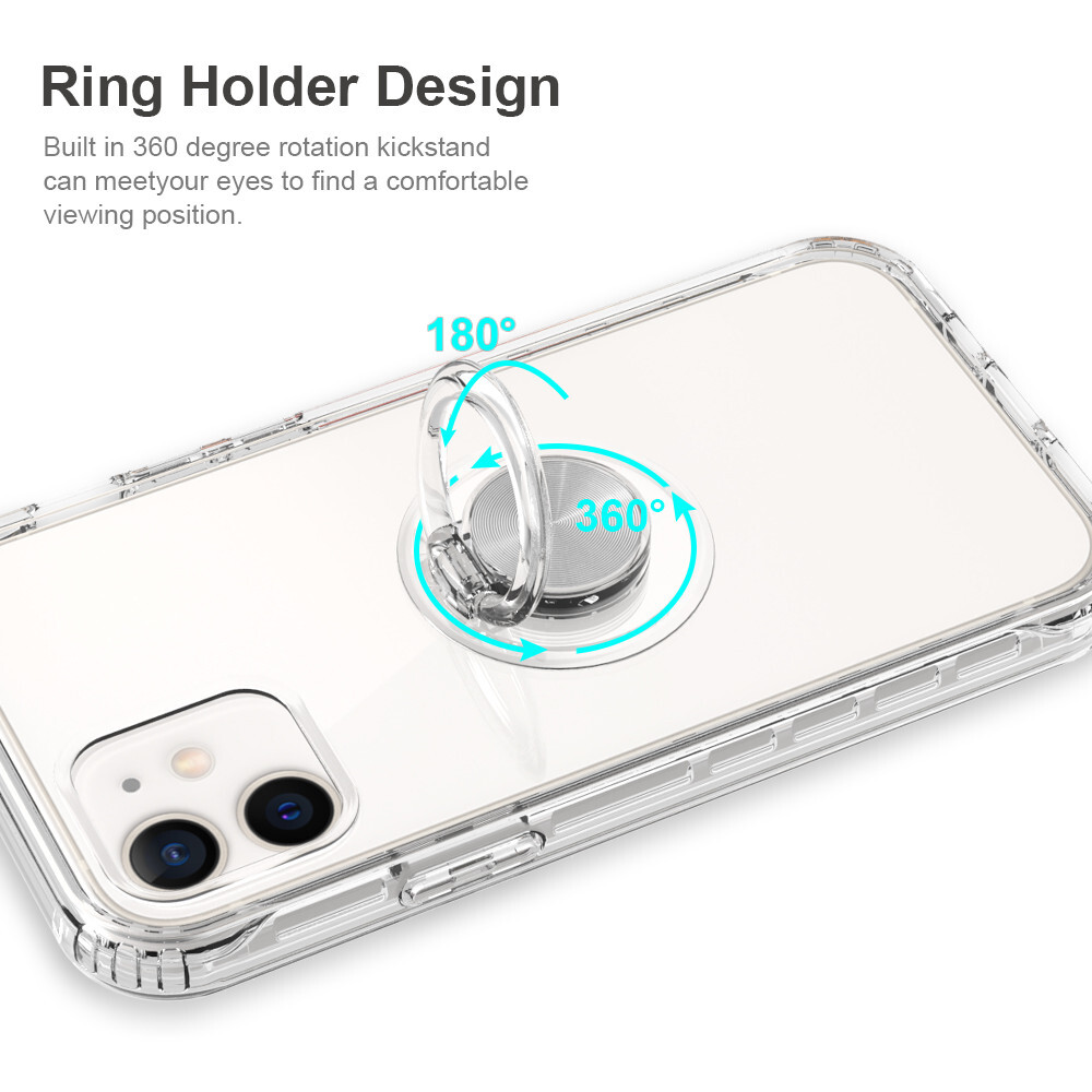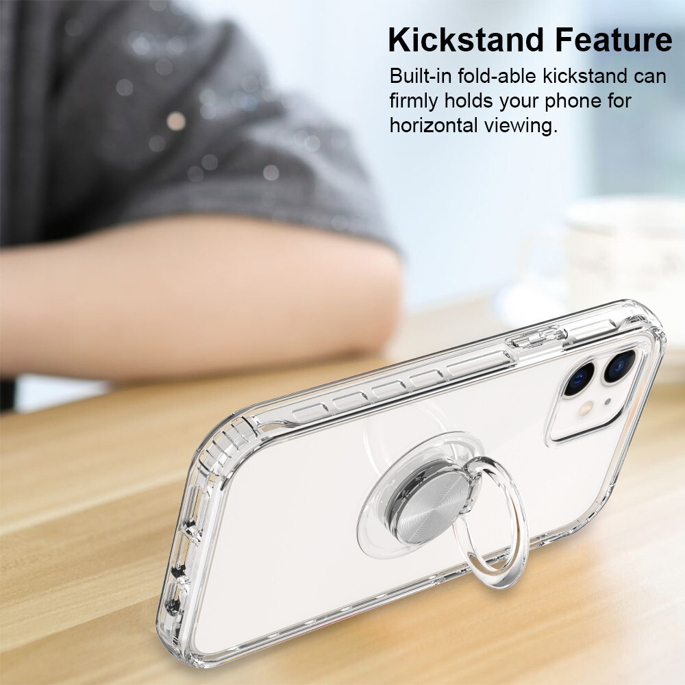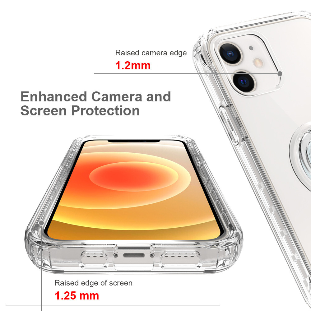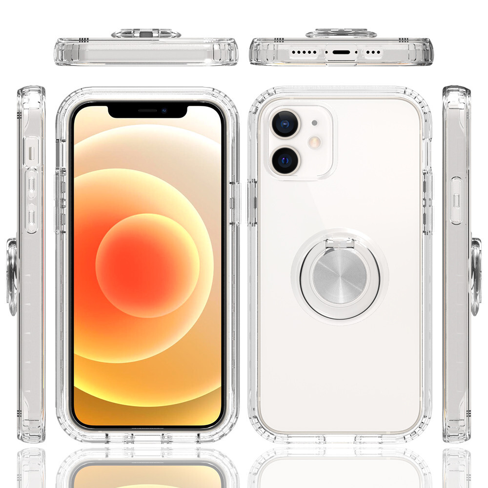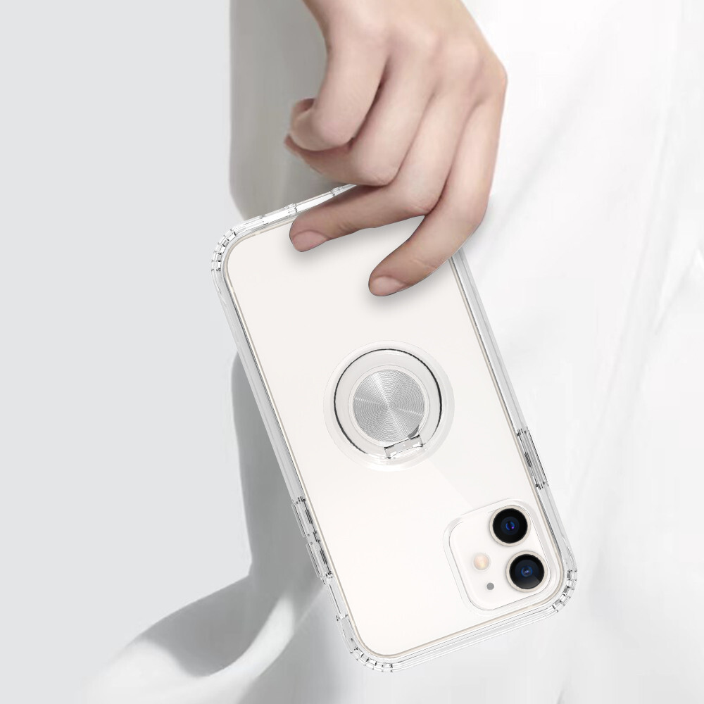 iPhone 12 Pro Transparent Protective Clear Case, Metal Ring Stand Magnetic Mount