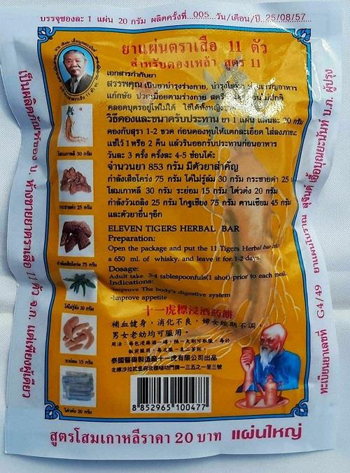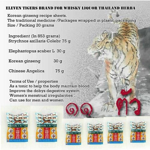 • Product Type: Traditional herbal preparation used in Thai cultural practices, commonly associated with Ya Dong style whisky infusion. Eleven Tigers Herbal is recognized in traditional markets as a classic herbal mix rather than a modern pharmaceutical product.