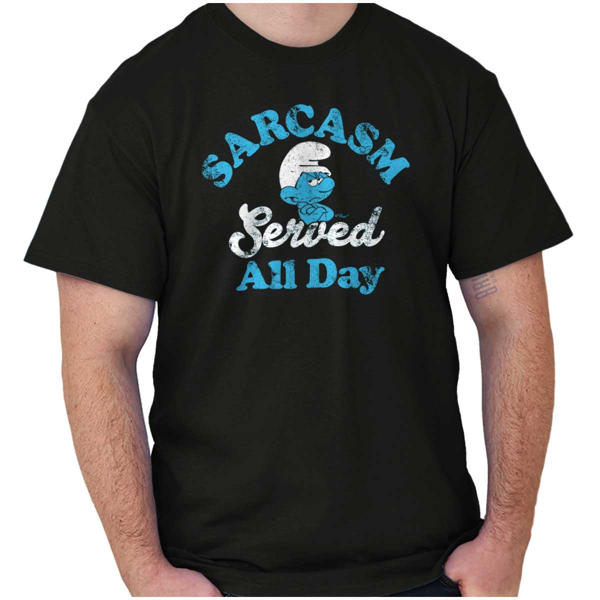 Say hello to your new favorite soft and comfy t-shirt, from Brisco Brands! This tee has a comfortable fit and is designed to last. This tee will be in heavy rotation in your wardrobe! This classic style t-shirt is made with cotton for breathability and durability. Please note some colors are a cotton polyester blend. Refer to the garment details for more info. The featured Smurfs quality printed graphic is stylish and fun. It will pair well with many of the staple items in your closet, year round! Add trendy fun to your casual outfits with this wardrobe essential. It has a seamless double need