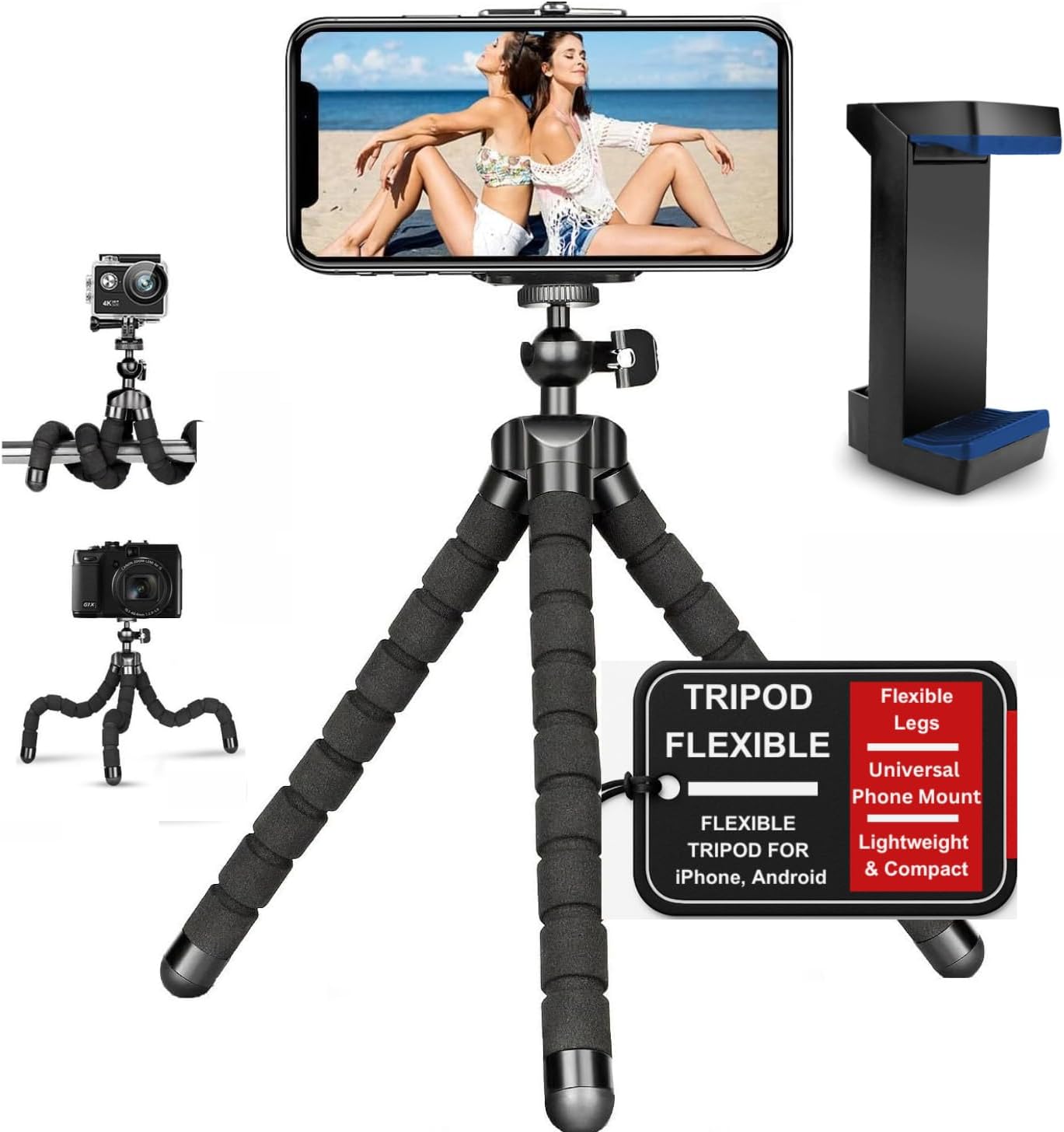 Acuvar Flexible Phone Tripod for iPhone & Android – Portable Mini Tripod with Universal Phone Clip Mount for Video Recording, Vlogging, Selfies, Content Creation, and More!