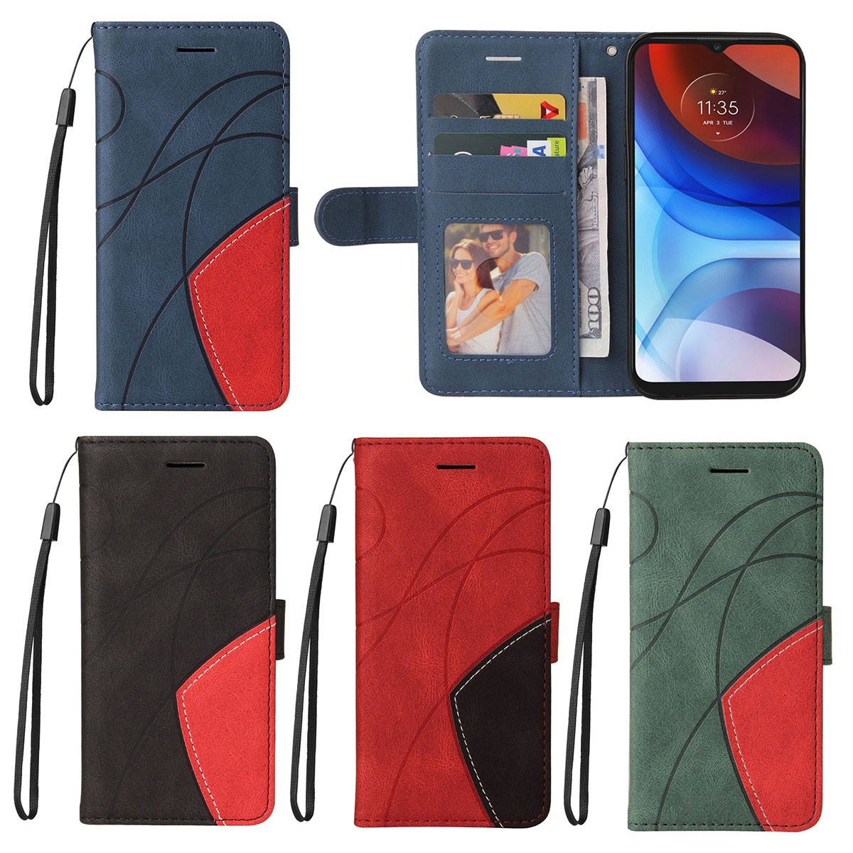 Flip Bicolor Handy Wallet Leather Case Cover For Motorola Moto Phone + A Wrist Strap