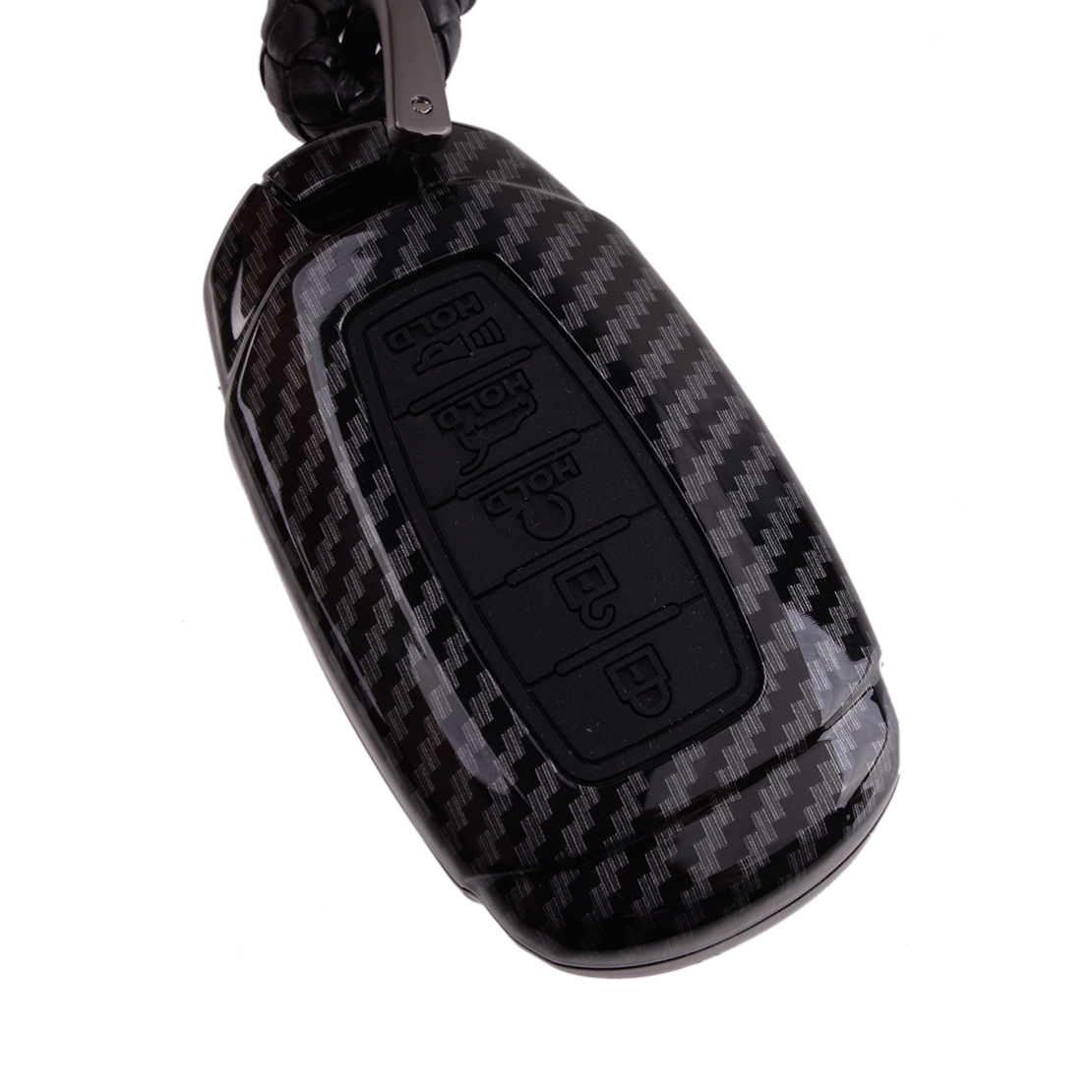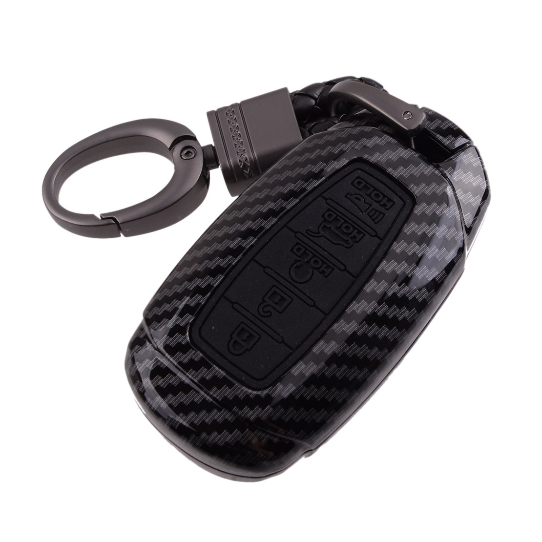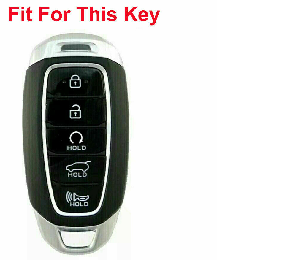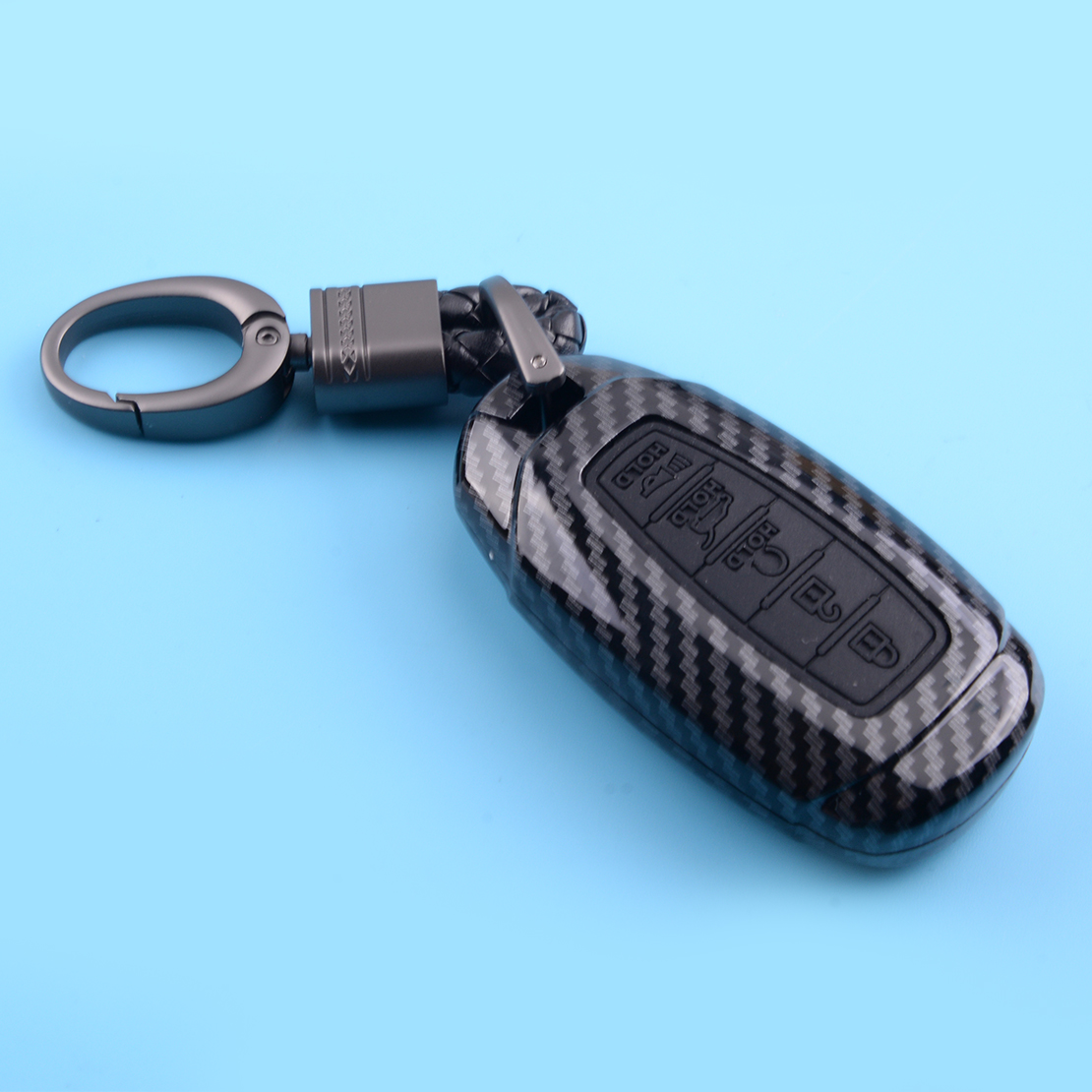 Carbon Fiber Style Car Remote Key Fob Cover Case Shell with Key Chain 5 Button Fit for Hyundai Palisade Elantra