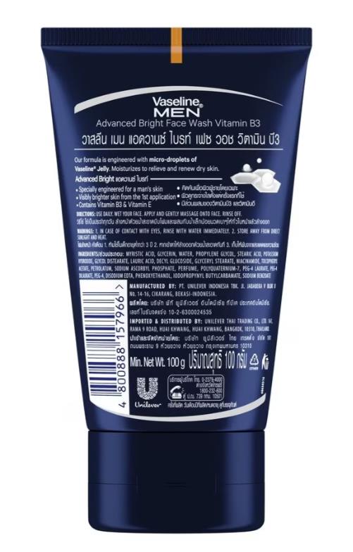 | | | 2 x Vaseline Men Face Wash Advance Bright Visibly Brighter Skin Bitamin B3 100g |
