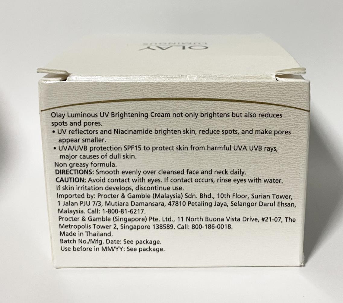 | | | Olay Luminous UV Bright Cream SPF15 UVA UVB 3 in 1 Day Face Moisturizer 50g |