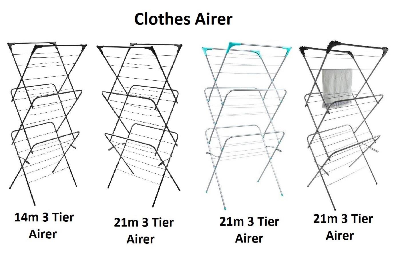 Clothes Airer 3 Tier Laundry Dryer Winged Folding In & Outdoor Horse Drying Rack