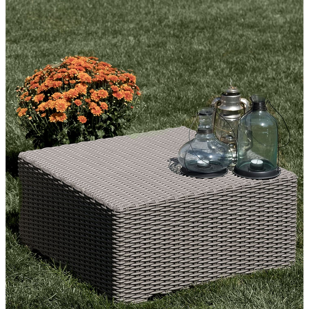 Keter California Outdoor Patio Coffee Table Resin Wicker Pattern Cappuccino
