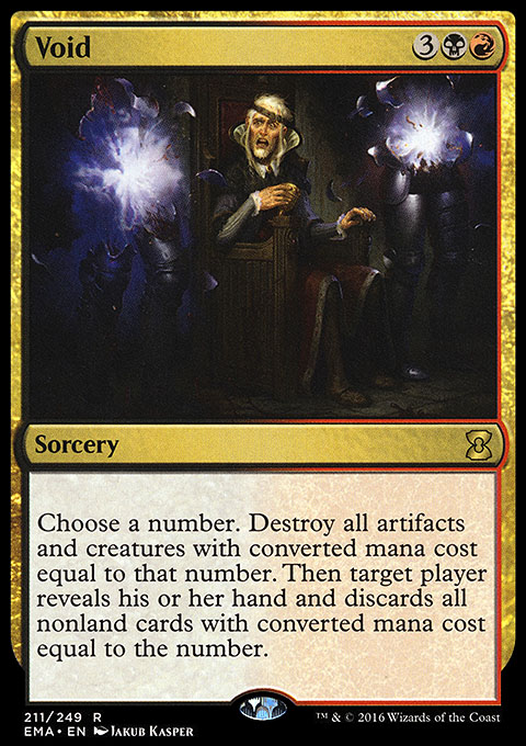 | | Name: | Void | | Set: | Eternal Masters | | Number: | 211 | | Condition: | Light Play | | Language: | English | | Variation: | Non-Foil | |