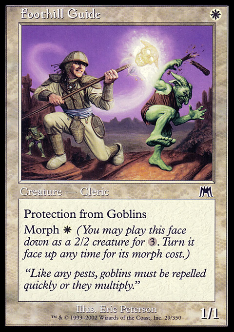 | | Name: | Foothill Guide | | Set: | Onslaught | | Number: | 29 | | Condition: | Near Mint or better | | Language: | English | | Variation: | Non-Foil | |