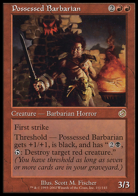 | | Name: | Possessed Barbarian | | Set: | Torment | | Number: | 111 | | Condition: | Light Play | | Language: | English | | Variation: | Non-Foil | |