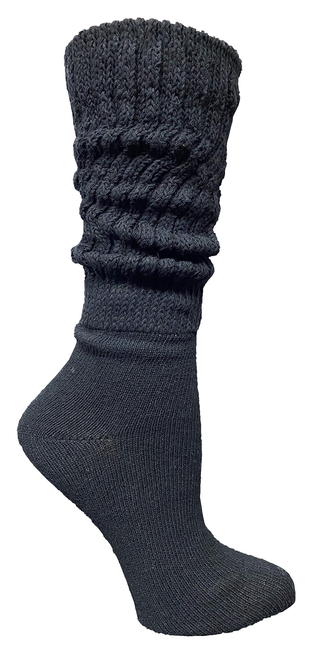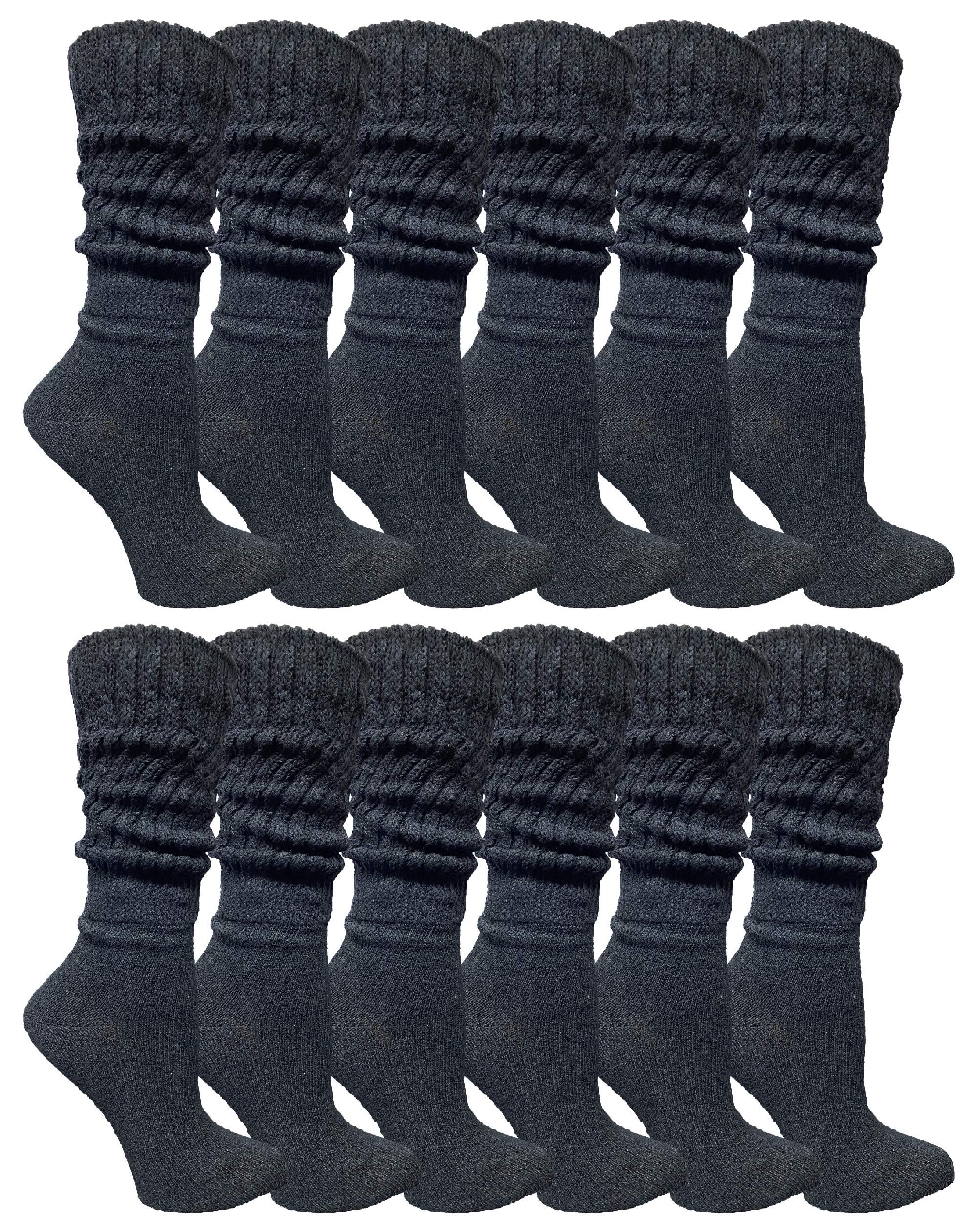 These SOCKS'NBULK extra slouch socks are perfect for women and teens. Ideal for casual wear or sports and other activities. Each slouch socks pack comes with 6 pairs or 12 pairs. Available in white, black, or assorted colored. Size 9-11 will fit womens shoe sizes 5-10. Made with 80% Cotton 14% Polyester 4% Spandex 2% Rubber.