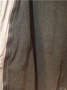 Brand new never worn but the blue bled through and discolored a part of the grey side. This is a factory issue. Please check the picture for the damage