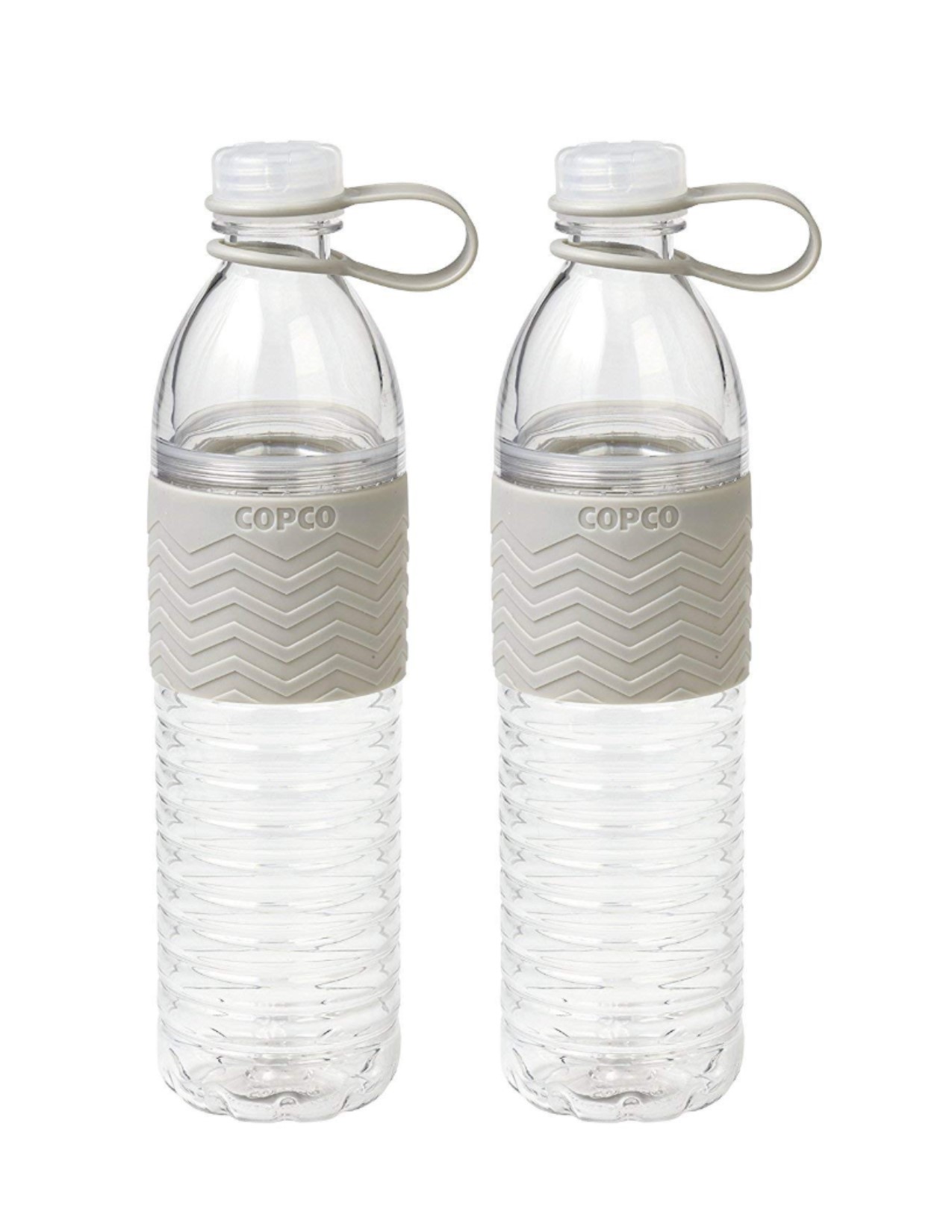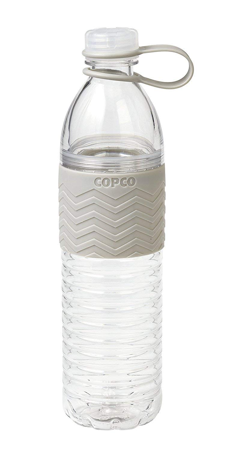 The Copco Hydra Reusable Water Bottle is the perfect choice for enjoying your favorite beverage on the go! Crafted from durable, BPA free plastic, this travel companion is perfect for school lunch boxes, sitting in your locker or throwing in your purse. It features an easy to twist body allowing you to add ice cubes or fruits like lemon and lime to keep your beverage fresh, cold and flavorful. The lid has a spill resistant sealing mechanism which helps prevents against messy spills. A textured, non slip sleeve not only makes gripping the bottle easy, but adds a fun pop of color. Holds up to 20 ounces. Microwave safe. Hand wash recommended. Comes in a pack with two Hydra bottles with a grey non slip sleeve.Product Specifics