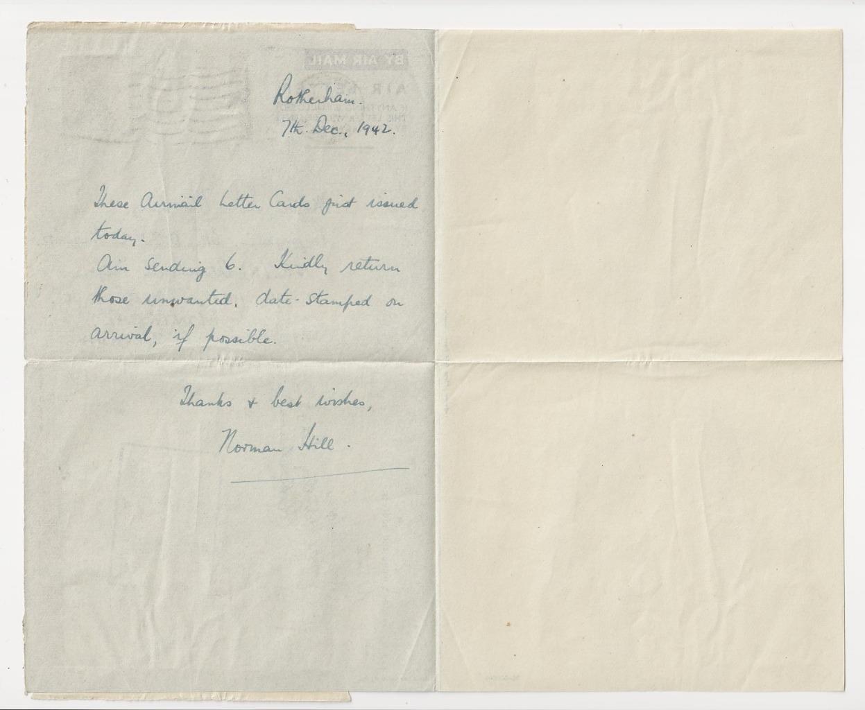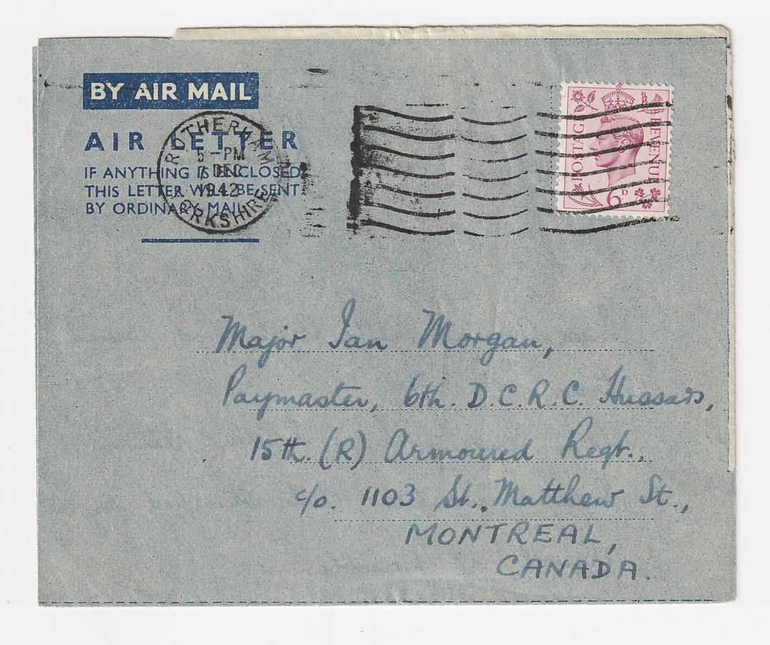 First day of use for the air letter sheet requiring stamp to be affixed, used with GVI 6d stamp.
