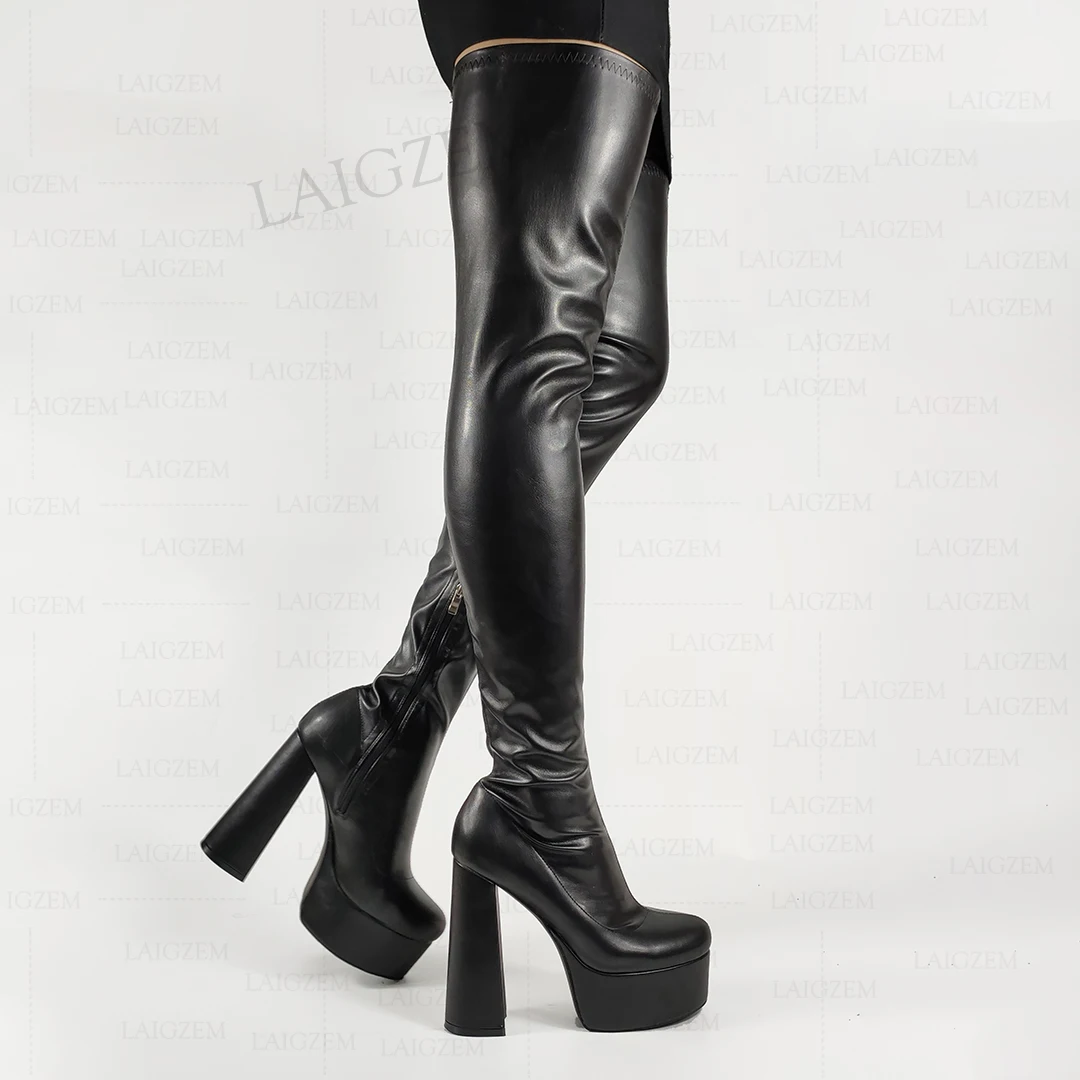 Women Thigh High Boots Thick Chunky Heels Boots Over Knee Cosplay Height Increase Shoes Woman Big Size 41 45 47