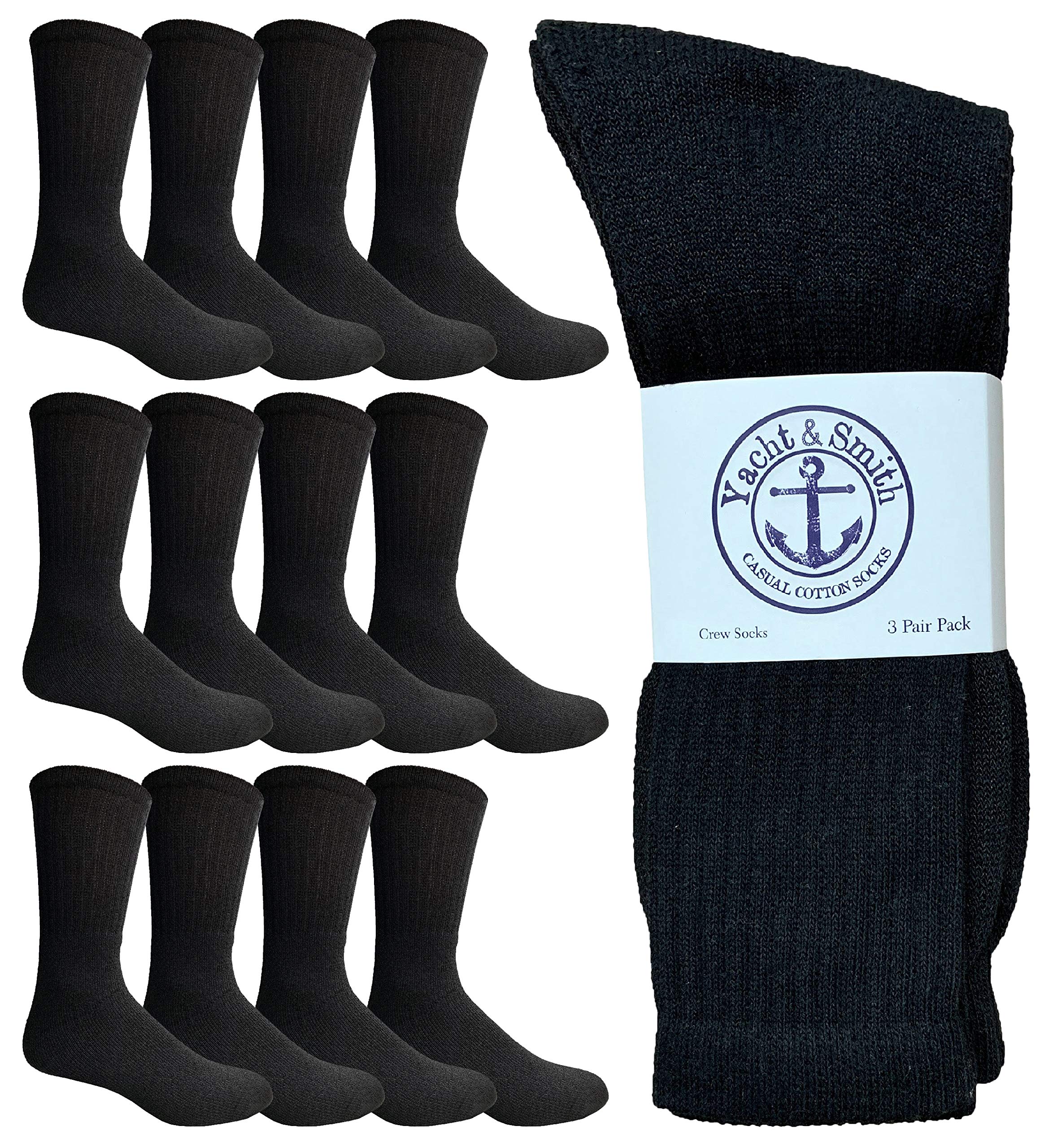 • 12 PAIRS OF MENS BLACK ATHLETIC CREW SOCKS: Purchasing these socks at heavy discounted prices is a great way to save on budget. Planning a event or buying for a cause becomes simplified and cost effective. Purchase a variety of pack sizes, colors and sizes for Men Woman and Children at the lowest wholesale price.
