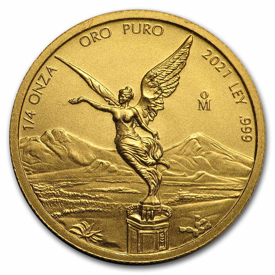 Fractional Gold Libertads have extremely low mintages, giving them further collectible appeal on top of their classic design. Add this 2021 1/4 oz Gold Mexican Libertad coin to your cart today!