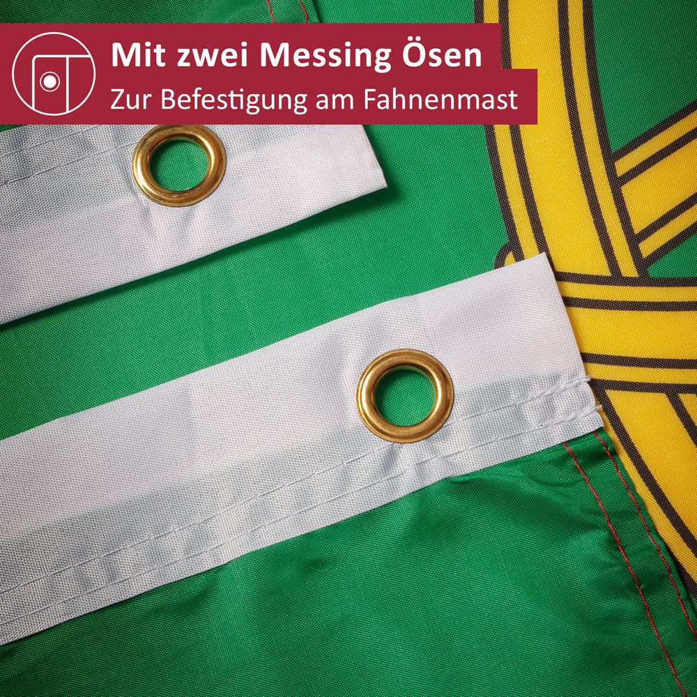 UNSERE QUALITÄT: ✓ wetterfest ✓ doppelt umsäumter Fahnenrand ✓ robuste Ösen aus Metall ✓ intensive Farben