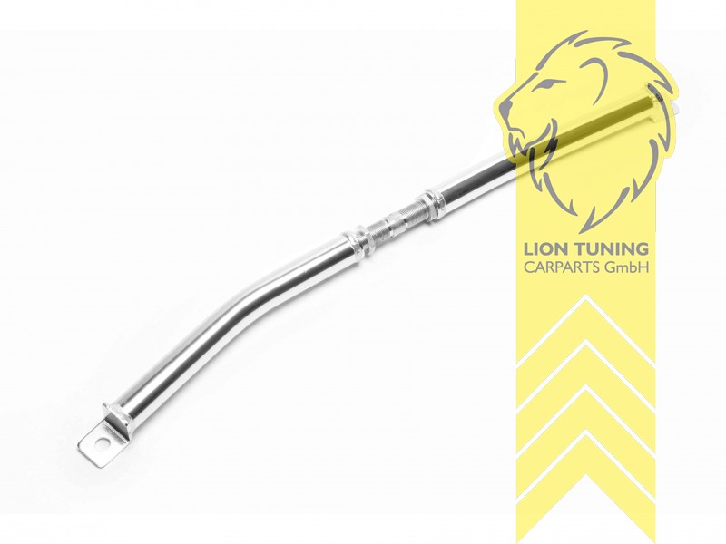 Unsere robusten Querlenkerabstützungen werden aus hochwertigem Aluminium hergestellt. Die Befestigung erfolgt vorne im unteren Bereich der Querlenker unter dem Motor. Sie stützt die Querlenker ab. Sinn und Zeck einer Querlenkerstrebe ist es, die Steifigkeit auf der Vorderachse zu verbessern. Je weniger sich die Karosserie verwindet, desto präziser lenkt das Fahrzeug ein. Das Fahrzeug fährt sich spürbar sportlicher. Bei Sportfahrwerken, bzw. Gewindefahrwerken empfehlen wir daher den Einbau einer Domstrebe.- sehr leicht trotz massiver Verarbeitung