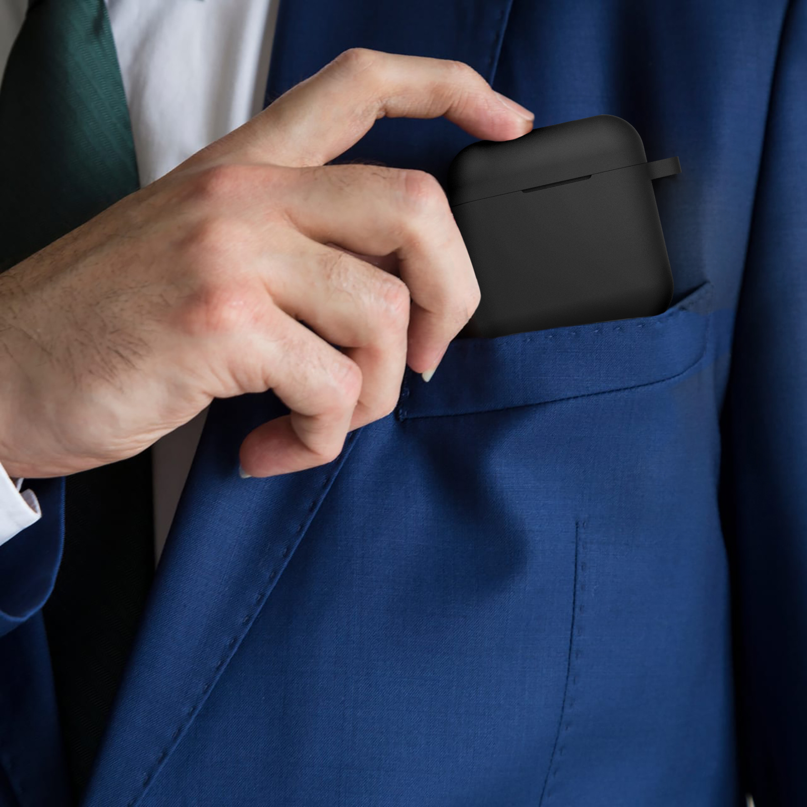 - Adhesive strips inside for a more secure fit. Portable with keychain hook. Special cutout for charging your earbuds without removing the cover.