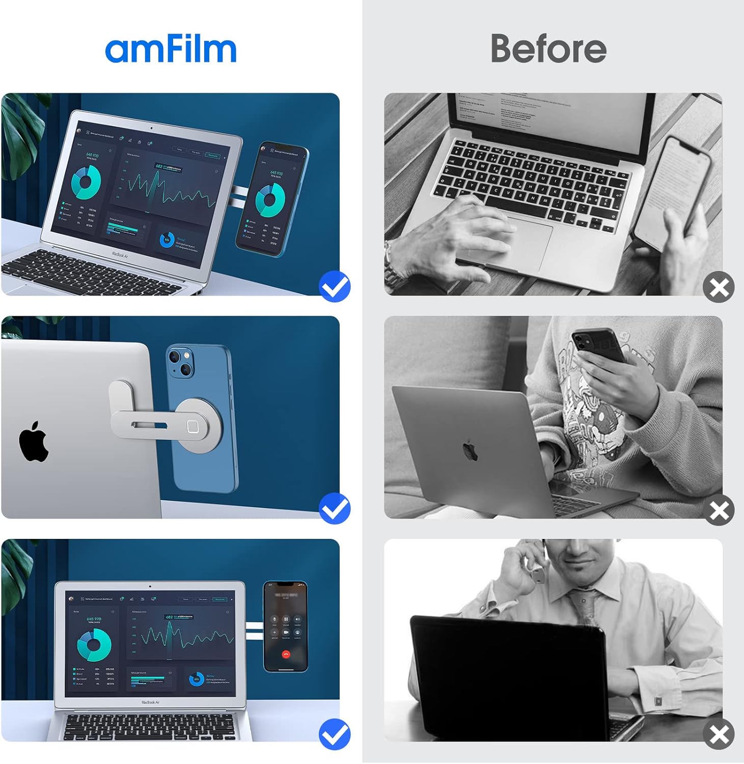[Exclusive for iPhone 13 & iPhone 12 series] Specifically designed for iPhone 12 iPhone 13 Pro Max Mini and MagSafe compatible case. Most non-MagSafe phones can use the laptop mount by attaching the metal plate (included with the product) to the back of the phone or the phone's case.[Easy to attach] Simply peel the protective adhesive tape off the mounting base, attach it to the back of your desktop, macbook or laptop monitor, and rotate the stand arm outward to display the magnetic holder.