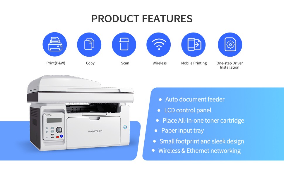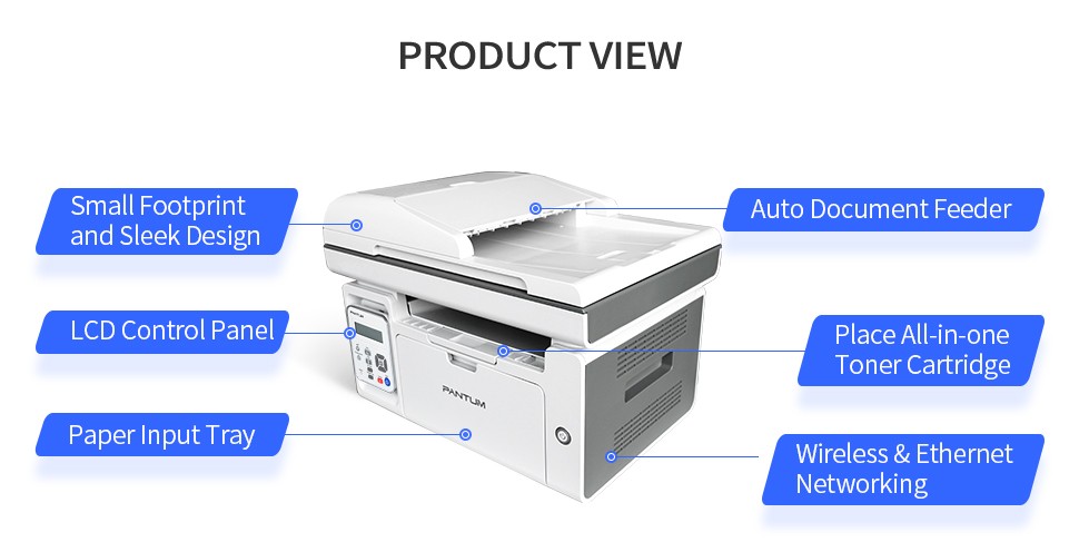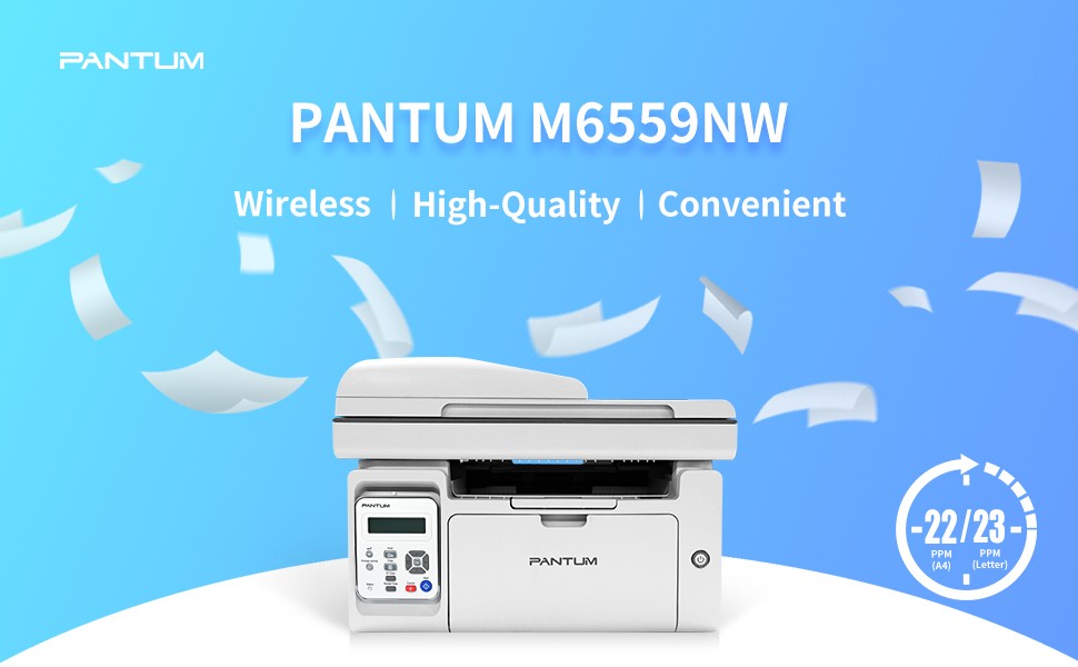 Pantum M6559NW Wireless Mono Multifunction Laser Printer (Print, Scan, Copy) - Wi-Fi / USB Suitable for home users or small offices Works with Windows, Mac, Linux, Android and iOS Connectivity: Wi-Fi / Wi-Fi Direct / USB 2.0