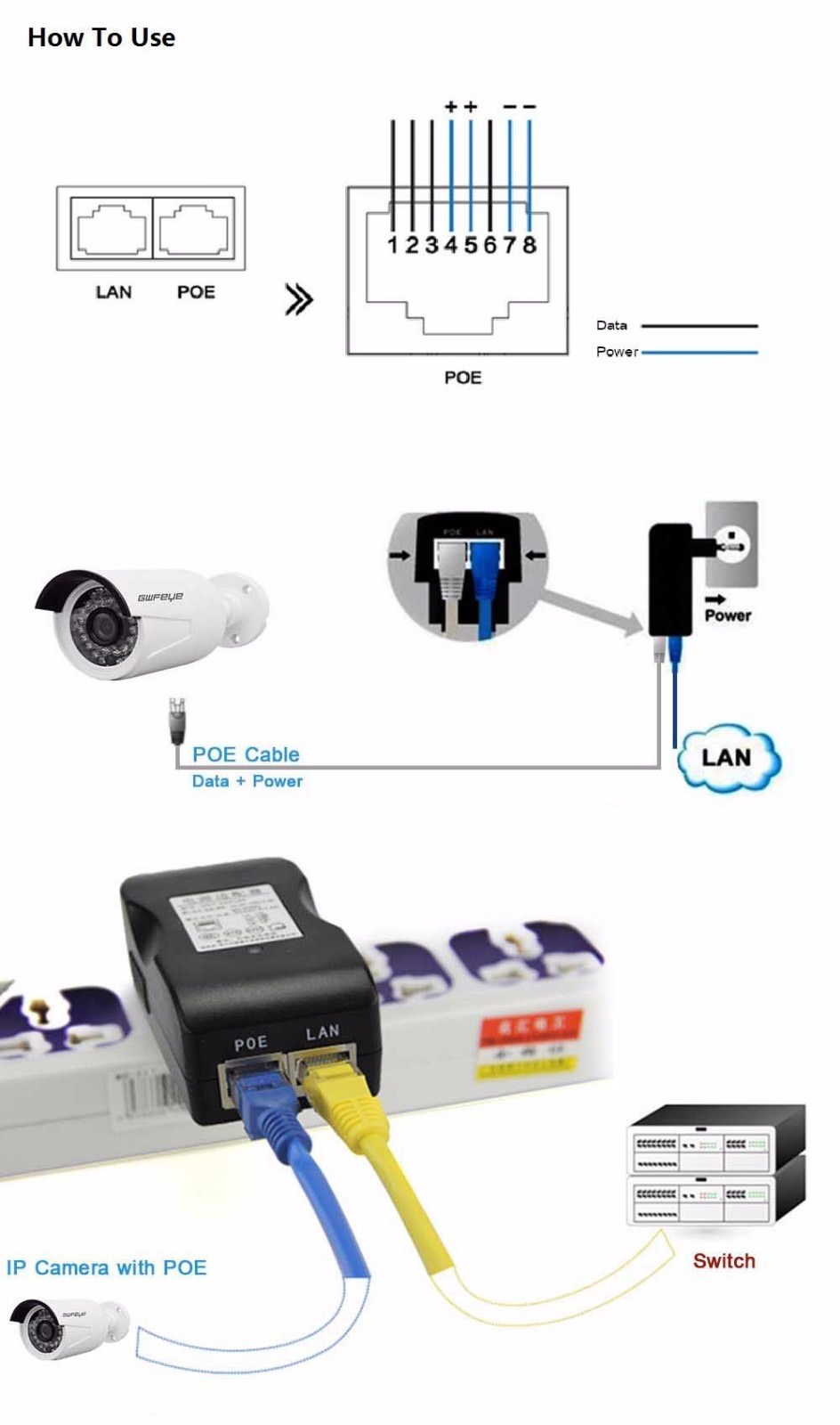15V POE device as Wireless Access Point, IP Phone, IP camera, Gateway , Switch, etc. |