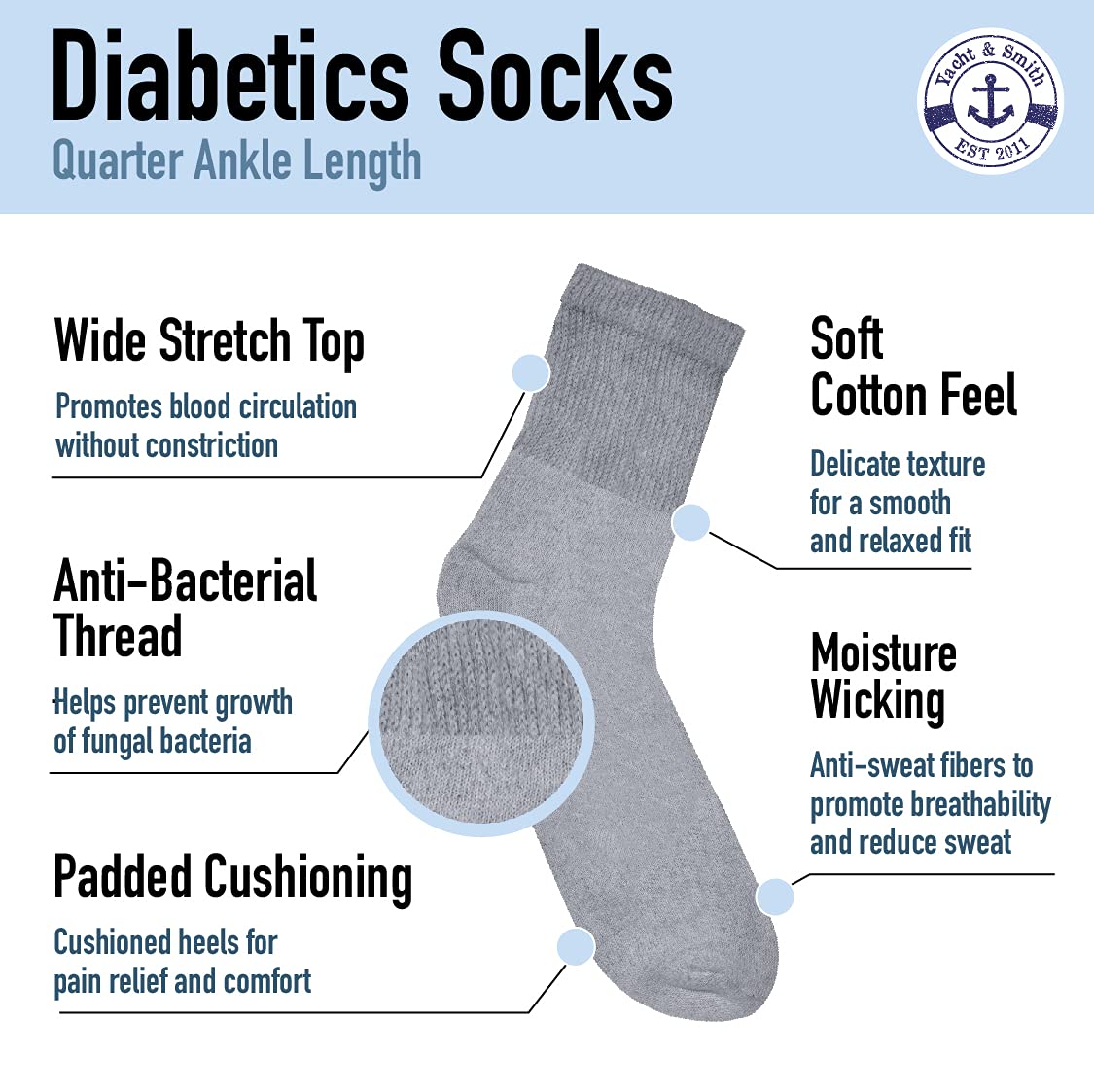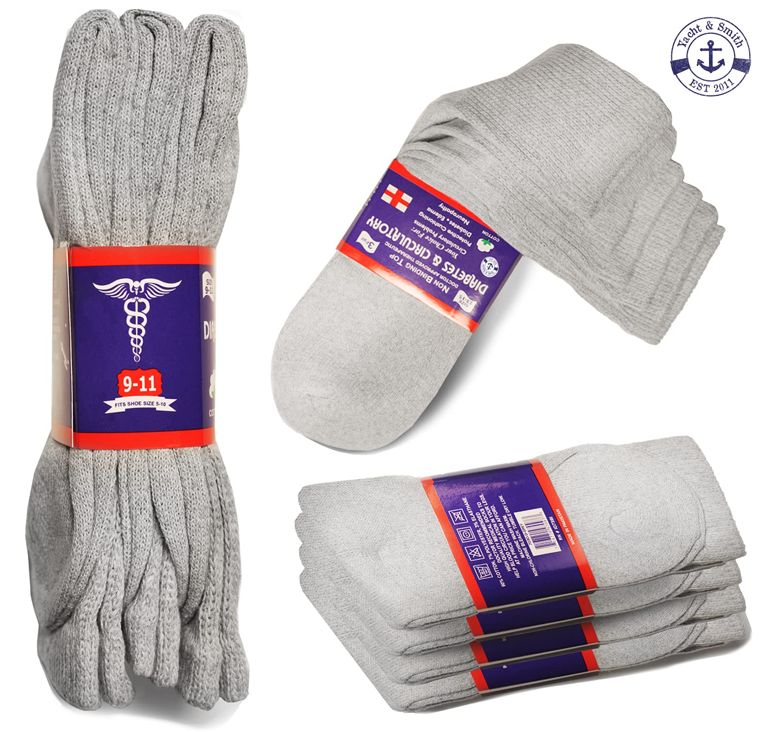 Yacht & Smith Loose Fit Non-Binding Soft Cotton Diabetic Crew And Ankle Socks, Bulk Value Pack (6 Pack Gray Ankle, Women (9-11)) ![]() ![]() ![]() ![]() ![]() ![]() ![]() ![]() ![]() Product Description